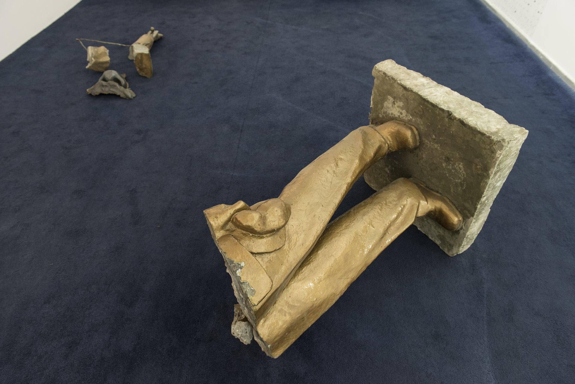 Yevgeniya Belorusets, Let’s Take Lenin’s Head Back Together! 2015 fragments of destroyed monuments, colour photography, reprints of Soviet magazines, a selection of quotations