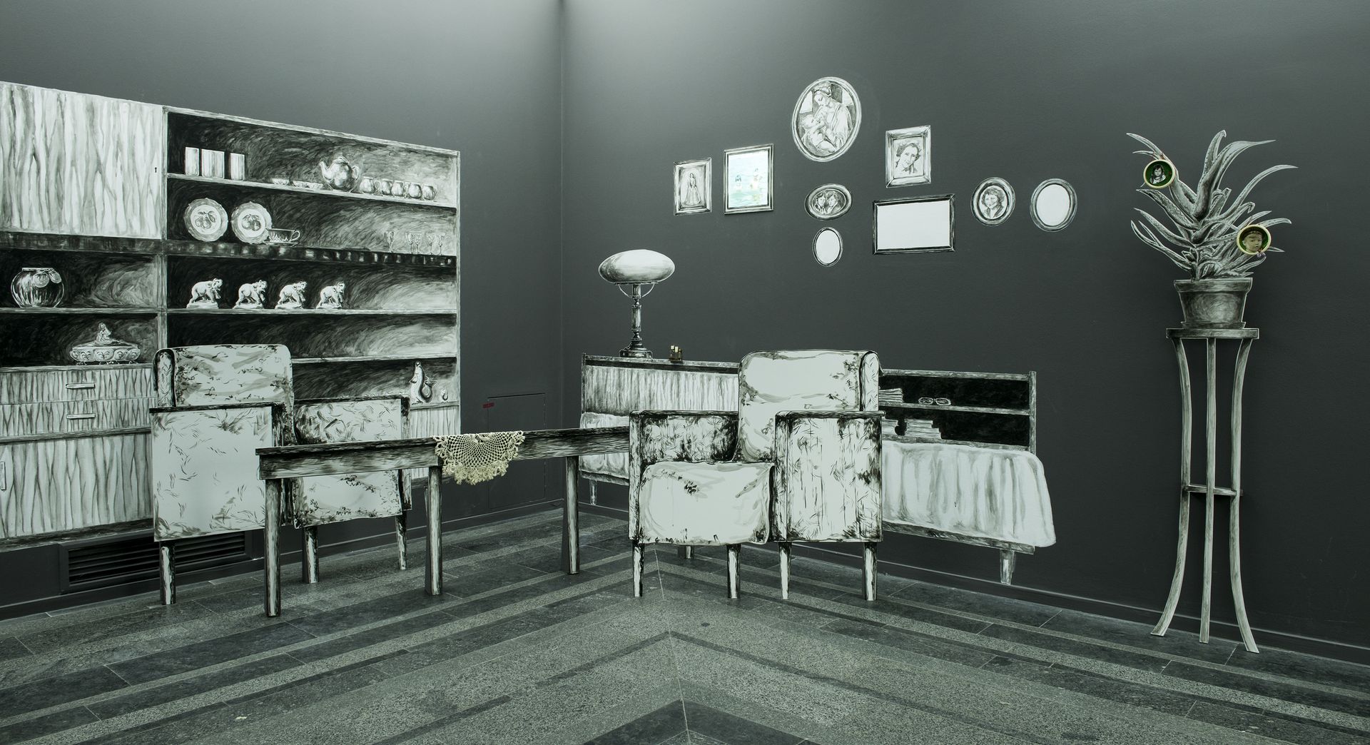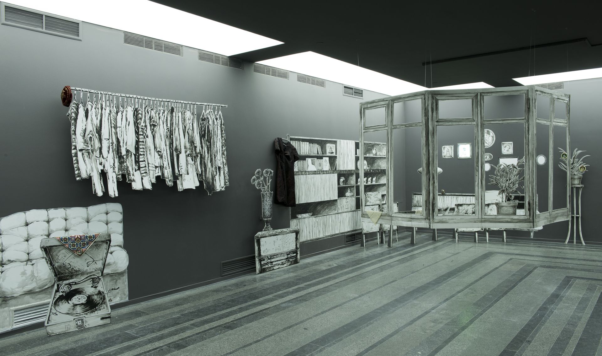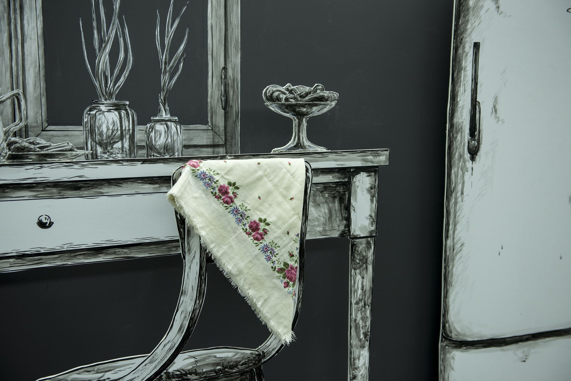 Kateryna Yermolaeyva, Blockade of Memories, 2015 murals, acrylic on foam board, private things Produced by PinchukArtCentre