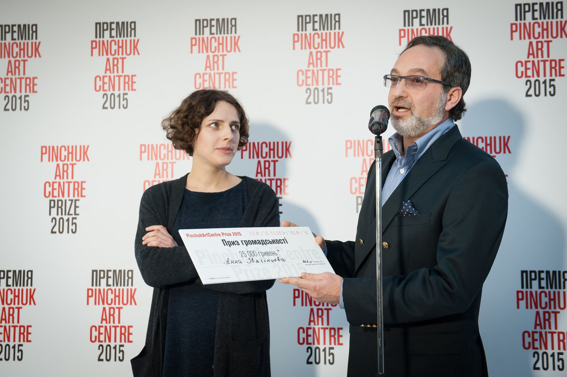 Anna Zvyagintseva, winner of the first Special Prize and the Public Choice award, and Dmitry Logvin, Executive Director of PinchukArtCentre