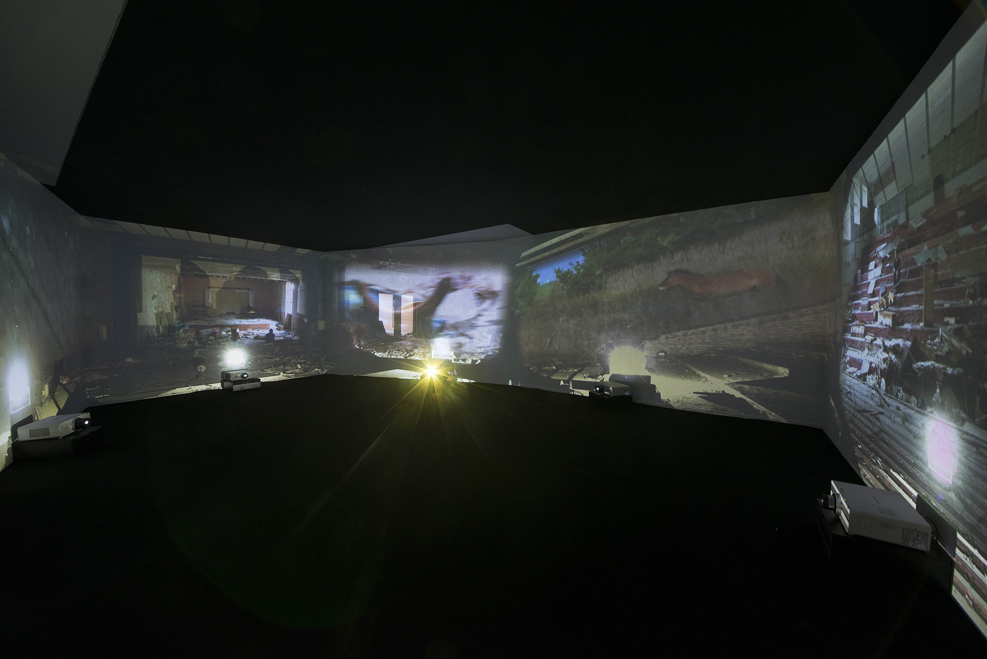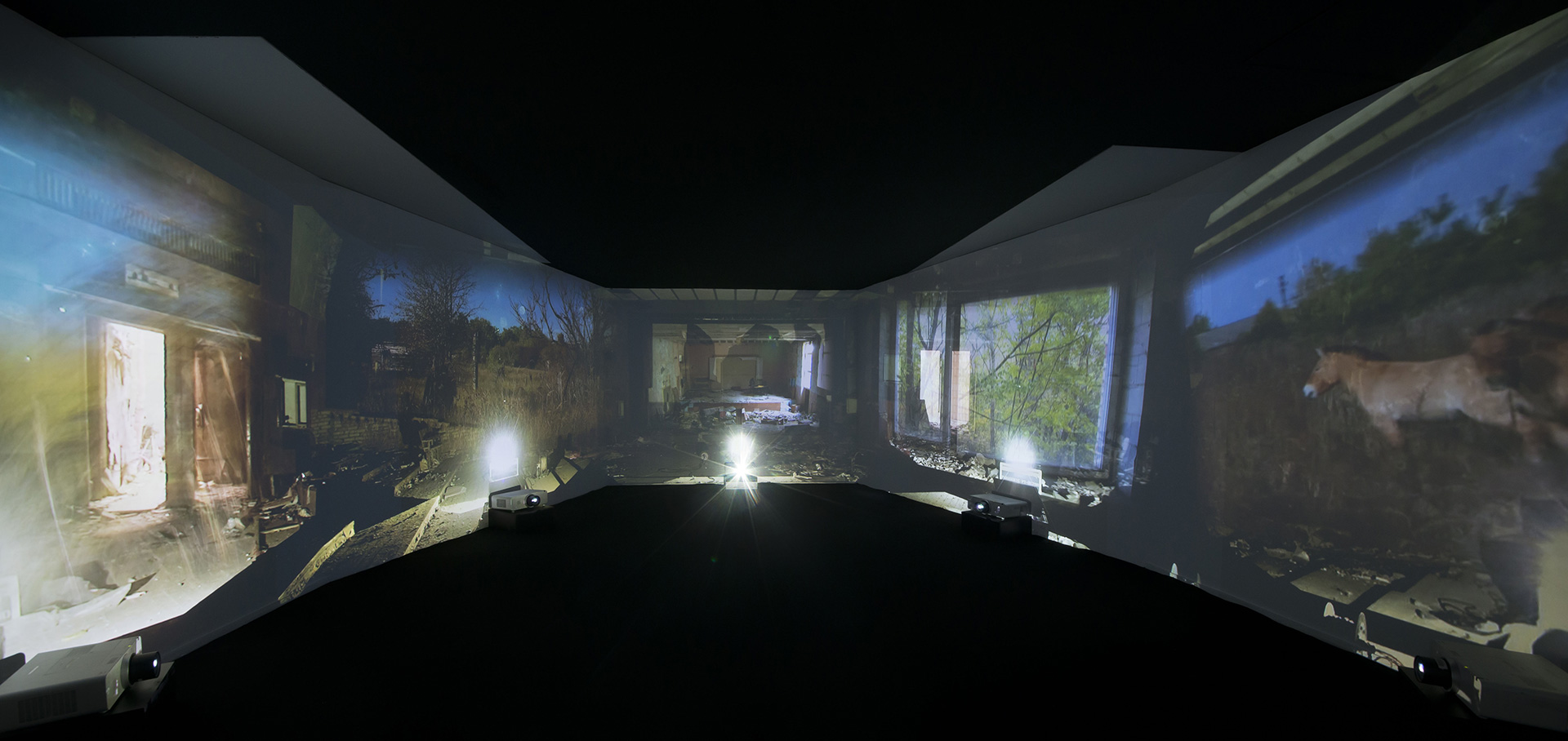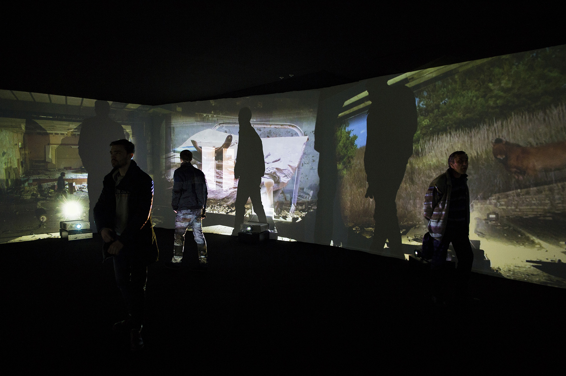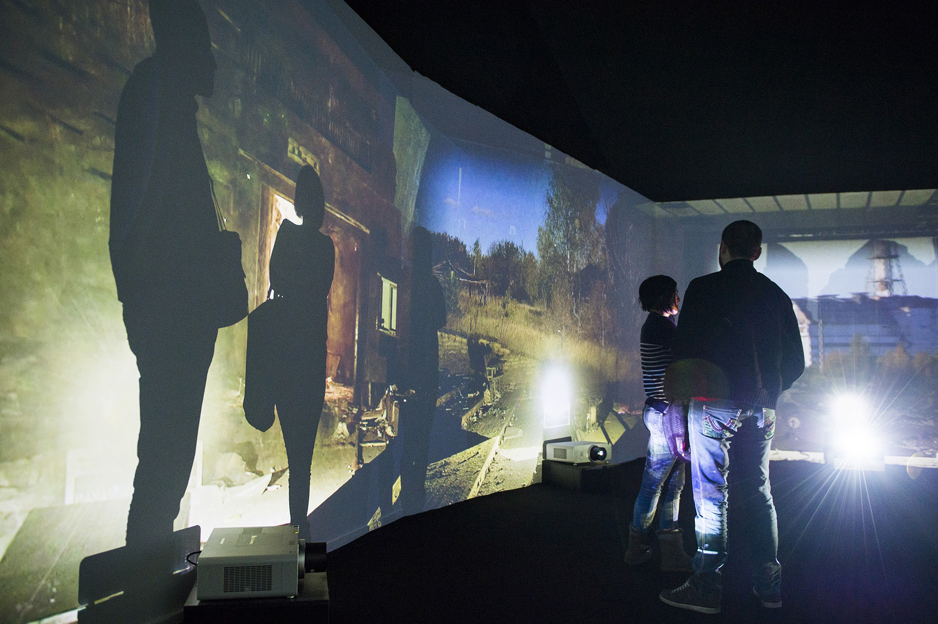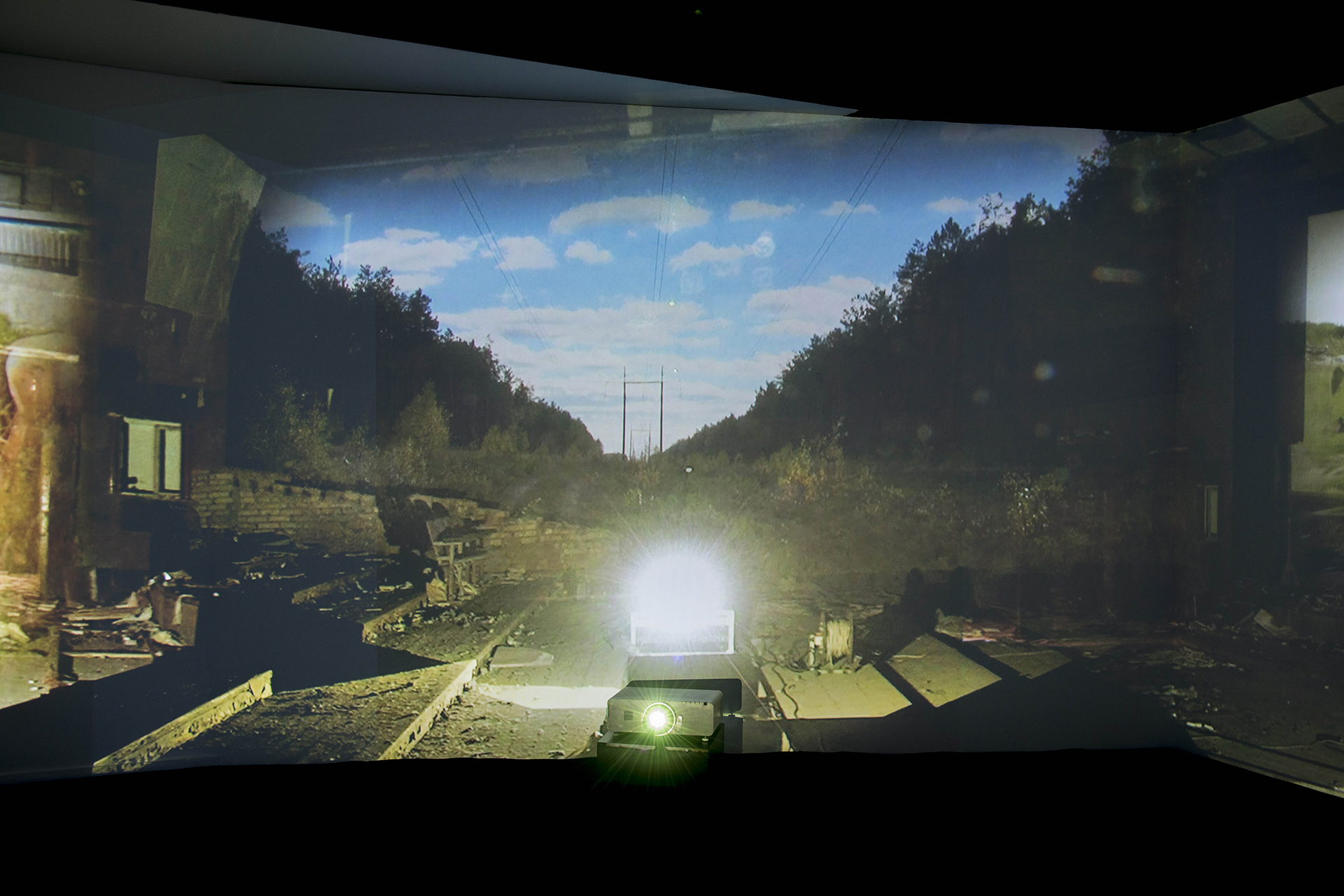 Відеоробота «Чорнобиль» (2011) Діани Татер, спроектована на шість екранів, показує зону Чорнобильської ядерної катастрофи і занепад, що продовжується на території, яка досі не підлягає відновленню. Проекції відео оточують глядачів з усіх боків, тож інсталяція створює враження повного занурення, котре порушується лише тінями самих спостерігачів.