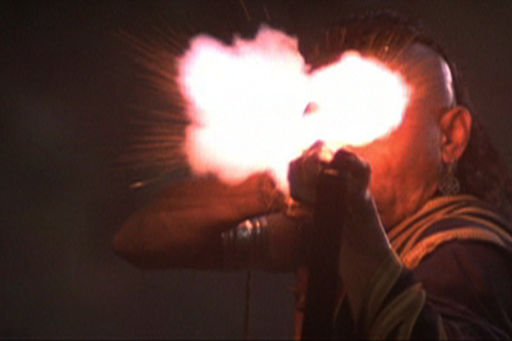 Фільм «Перехресний вогонь» Крістіана Марклея, який був створений у 2007 році і вперше продемонстрований у PinchukArtCentre у 2008 році – це чотирьохканальне відео, в якому різні люди стріляють з різного типу зброї. Це колаж образів, запозичених із американських вестернів і фільмів про війну. Аудіовізуальна композиція «Перехресного вогню» деконструює здійснення пострілу, дозволяючи глядачам раціоналізувати їхні емоційні й фізичні реакції на нього, а також вказує на їхній страх перед насильством і зачарованість ним.