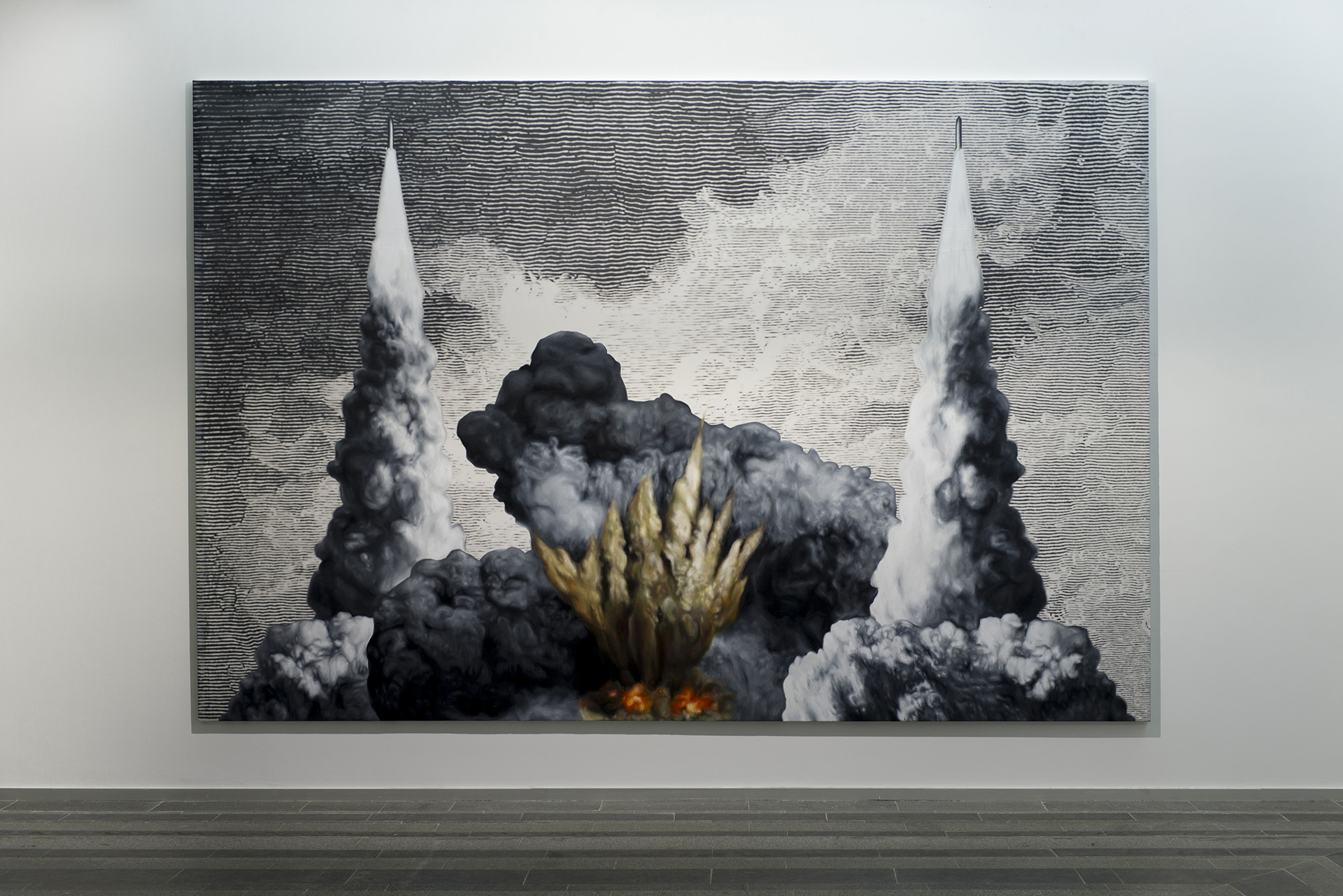 Ця робота стоїть поруч з картинами «Необоротна краса» (I і II) – масштабними зображеннями потужних вибухів. Ці живописні роботи додають почуття жаху, який непомітно змушує реальність зникати. Нові роботи автора говорять про радикальні зміни в художній практиці Волокітіна – це пряма відповідь на насильство, що стало частиною повсякденного життя.