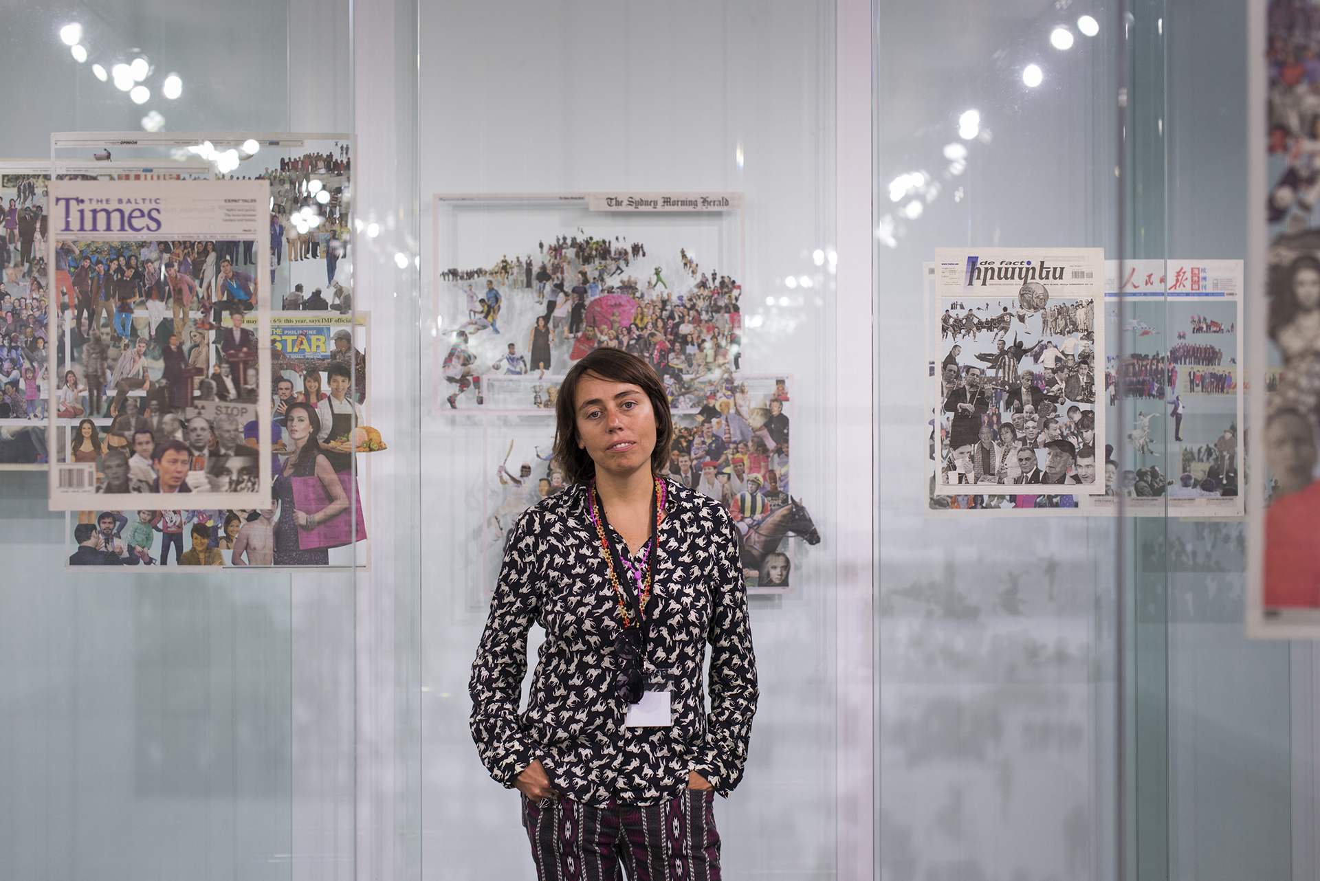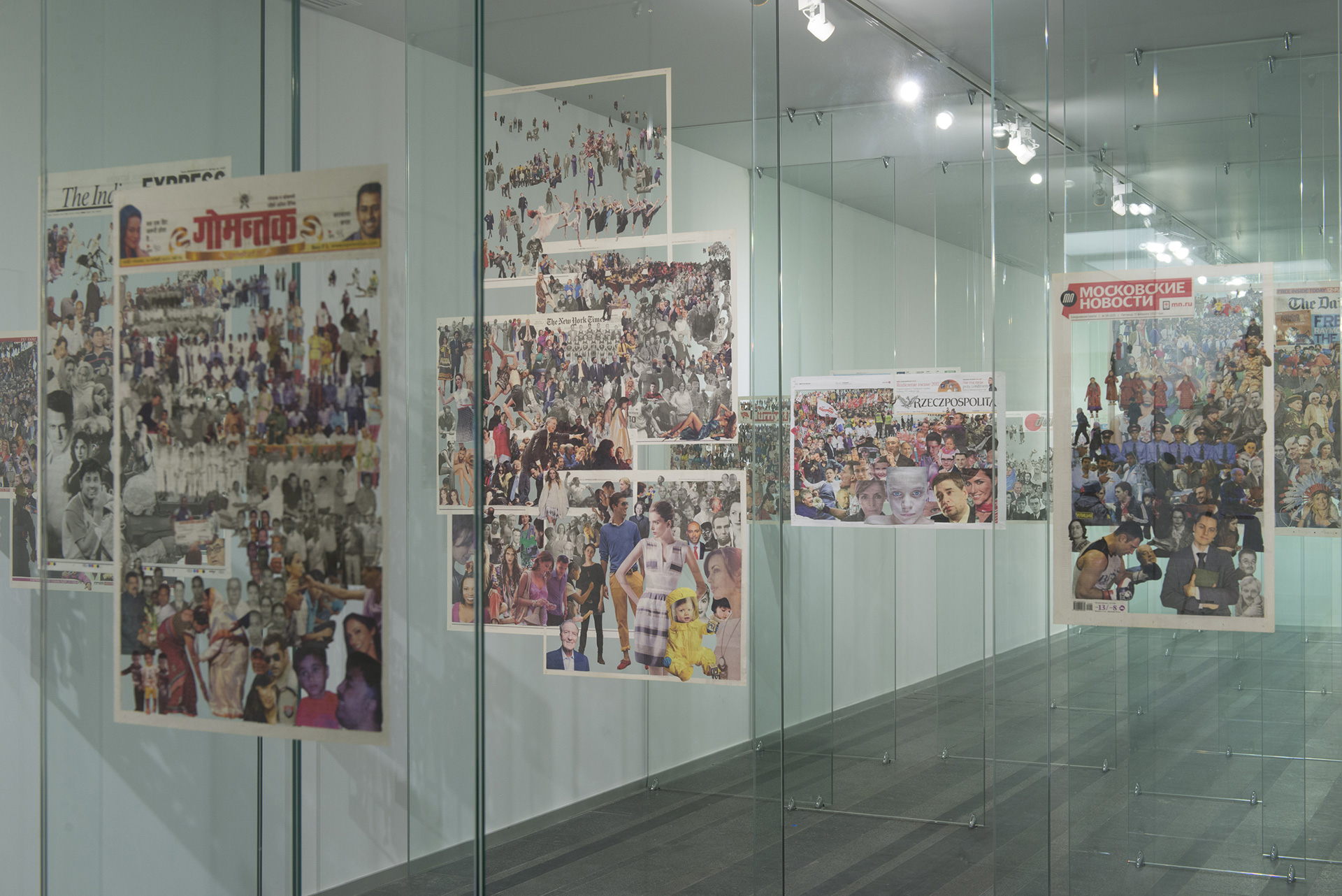 Третя робота Жанни Кадирової «Натовп» (2013) – це зібрання з 40 скляних вітрин, в кожній з яких представлений колаж з вирізок щоденних газет 2012 року. Взявши в руки газету, художниця вирізає портрети з кожної сторінки, створює композицію, в якій люди різних соціальних статусів, політичних поглядів і вірувань стають пліч-о-пліч. Втрачаючи зв’язок з текстом і мовою, крім своєї назви, яка слугує своєрідною географо-культурної «рамкою» для портретів, кожен колаж репрезентує маси людей, а вся інсталяція цілком – це портрет натовпу. Робота стає символом поточних протестів у всьому світі та відображає роль ЗМІ в цих конфліктах.