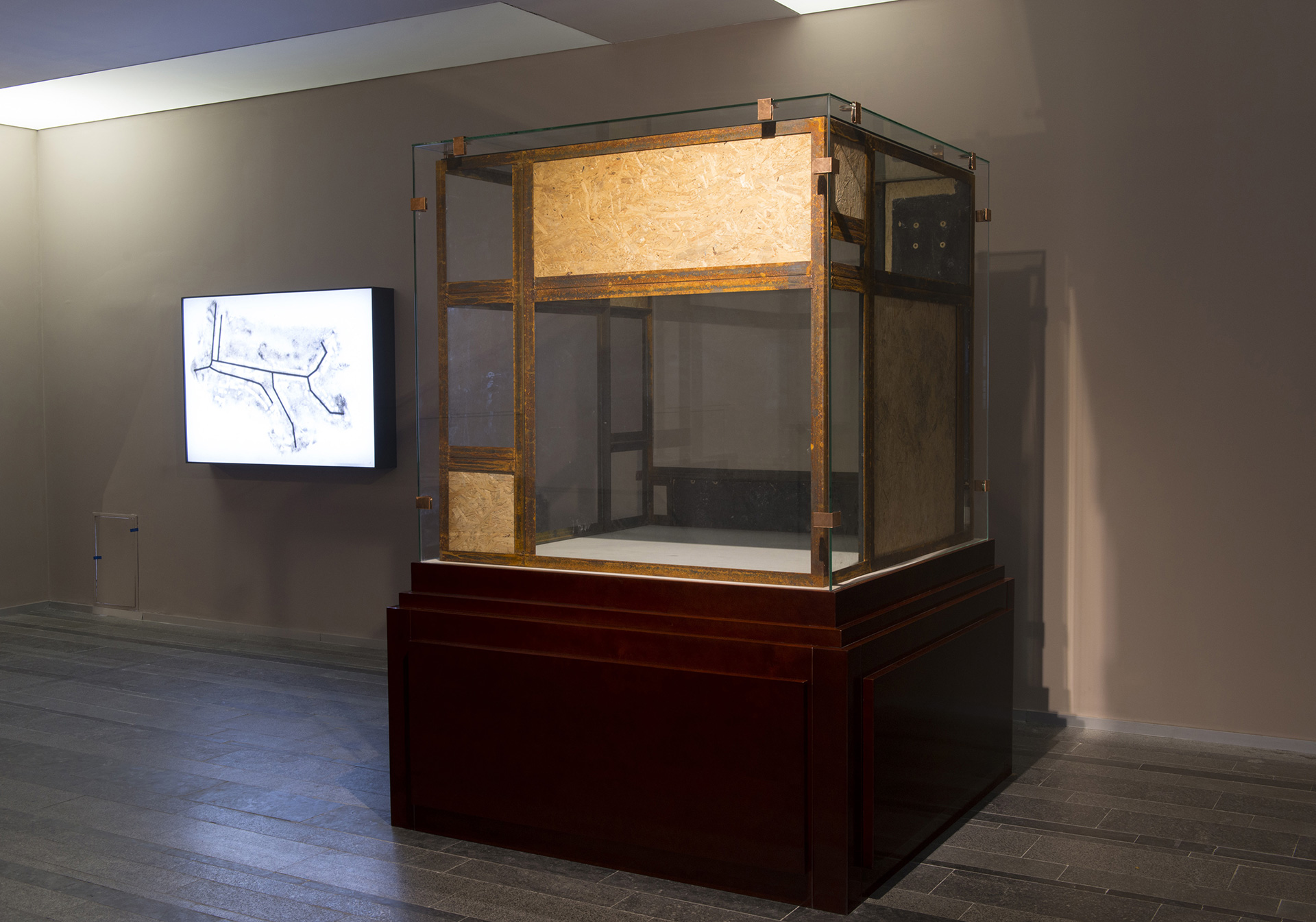 За допомогою п’яти масштабних експонатів Кадан вибудовує наратив історичного музею. «Вчора, сьогодні, сьогодні» (2012-2014) і «Робочі матеріали. Провина зображень» (2014) – це роздуми про прив’язку суспільства до спадщини та (минулих) ідеологій. Водночас «Адміністрація. Макет»(2014) і «Музей революції. Провина показу» (2014) змальовані безпосередньо з політичного конфлікту в Україні.