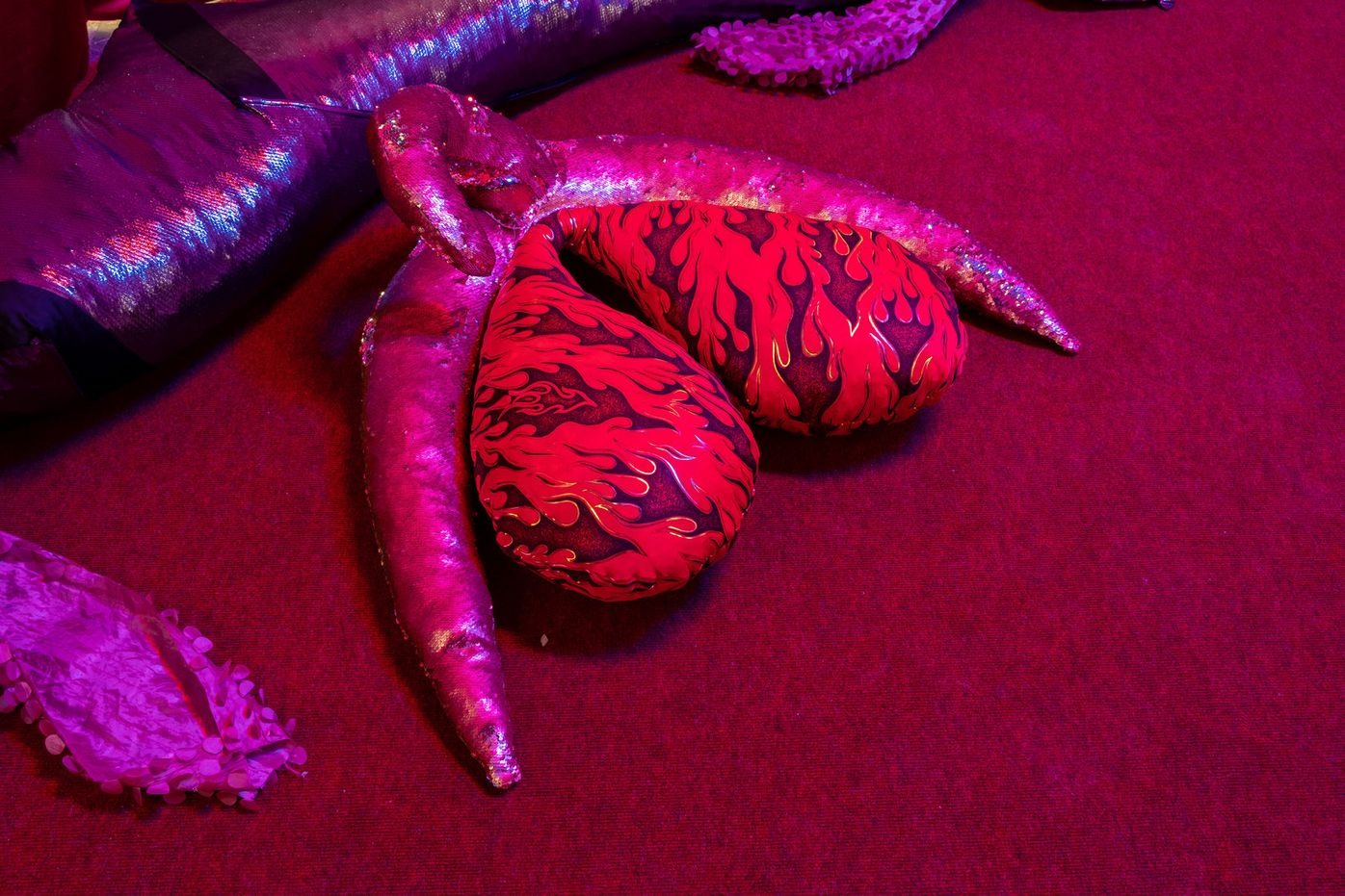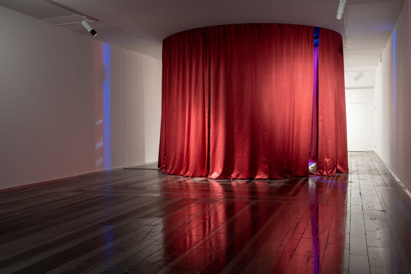 змішана техніка: текстиль, меблі, об’єкти, неон, телевізори, штори Створено за підтримки PinchukArtCentre