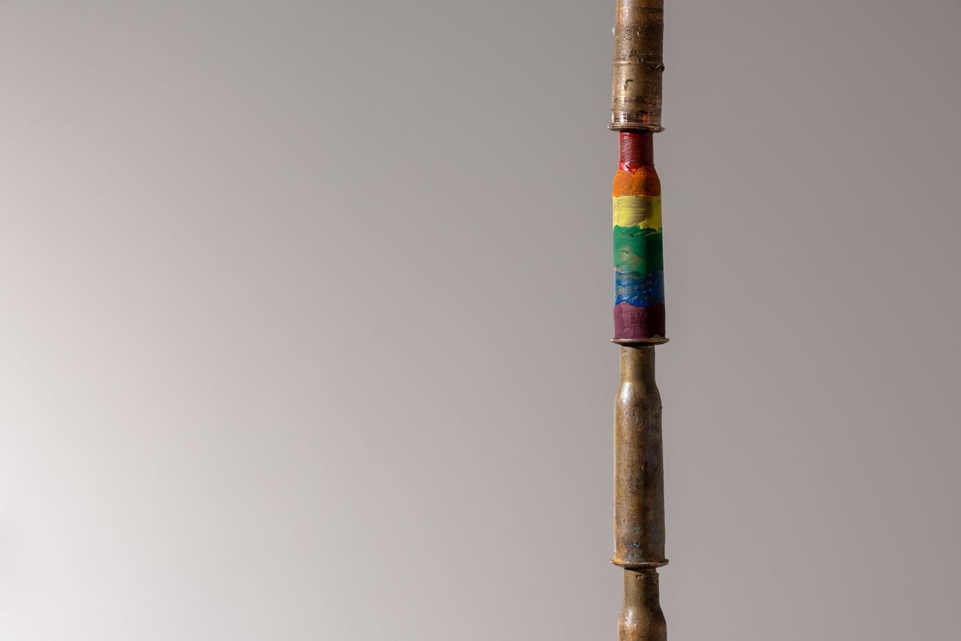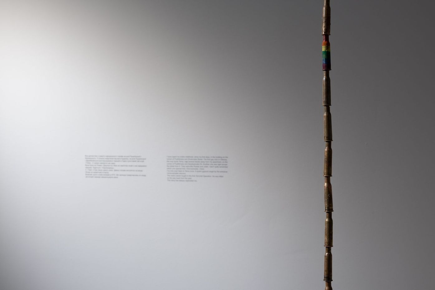 Мінімалістична скульптура Миколи Карабіновича, зібрана з стріляних гільз, розповідає про об’єднання ЛГБТ + і про-мілітаристського дискурсів в сучасних українських реаліях. В основі роботи лежить трагічна історія одеського активіста і власника гей-клубу «Тема» Олександра Лисоконя, який з початком військових дій на сході України вирушив добровольцем на фронт і не повернувся. Зі смертю Лисоконя припинилося і існування клубу, який був важливим місцем сексуальної соціалізації в провінційному місті.