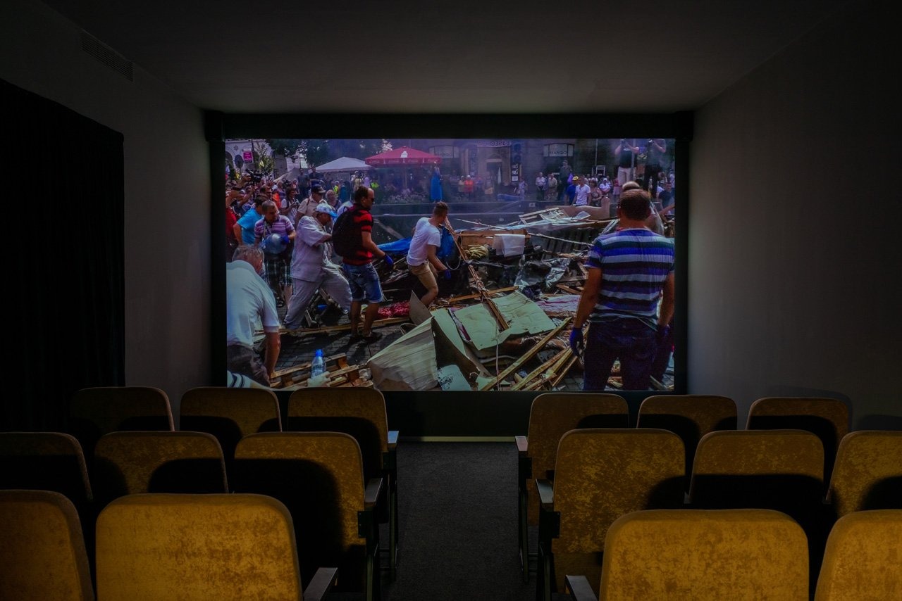 Остання кімната виставки – це кінозала для перегляду документальних фільмів про події, що відбувалися після Революції Гідності. У цих роботах політичний контекст передається через особистий досвід учасників та учасниць подій, уникаючи створення єдиного образу громадянського суспільства. Художник використовує цей підхід, щоб продемонструвати фрагментованість колективної пам’яті та дослідити, ситуацію, в якій ЗМІ транслюють переважно офіційний наратив.