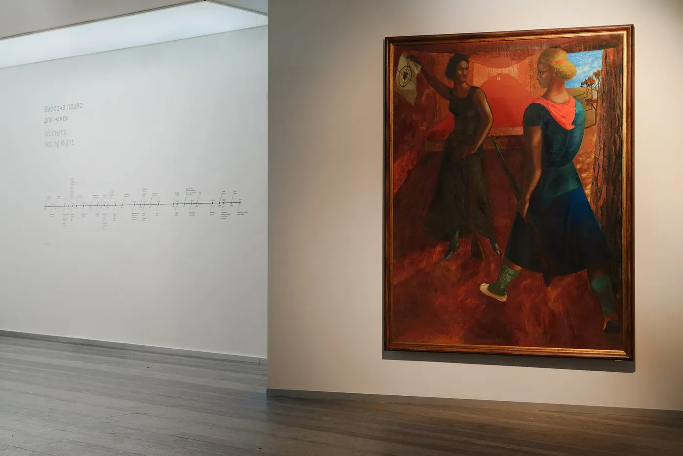 Ця зала демонструє «зовнішній», політичний простір, у який жінці треба було вийти з гаслами і плакатами, щоб вибороти права, які вона сьогодні має. Право обирати і бути обраною, право на освіту і професійну реалізацію нині здаються чимось одвічним, даністю, та колись їх було здобуто дорогою ціною.