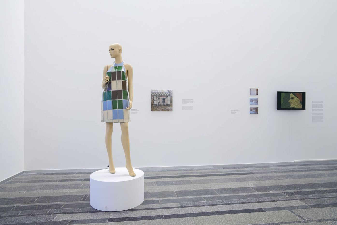 Сукню для манекена створено з керамічної плитки, яка прикрашала фасадну стіну автостанції «Поліське» в Київській області. Орнамент скульптури ідентичний орнаменту на стіні автостанції. Поліське — у минулому селище міського типу, розташоване в Чорнобильській зоні. Це був центр Поліського району Київської області, 1993 року селище через високий радіаційний фон було повністю відселено. Населення на момент Чорнобильської катастрофи (1986) становило 11,3 тис. жителів. У 1999 році селище офіційно знято з обліку як населений пункт. На сьогодні радіаційний фон у межах норми; у селищі проживає біля 10 осіб самопоселенців.