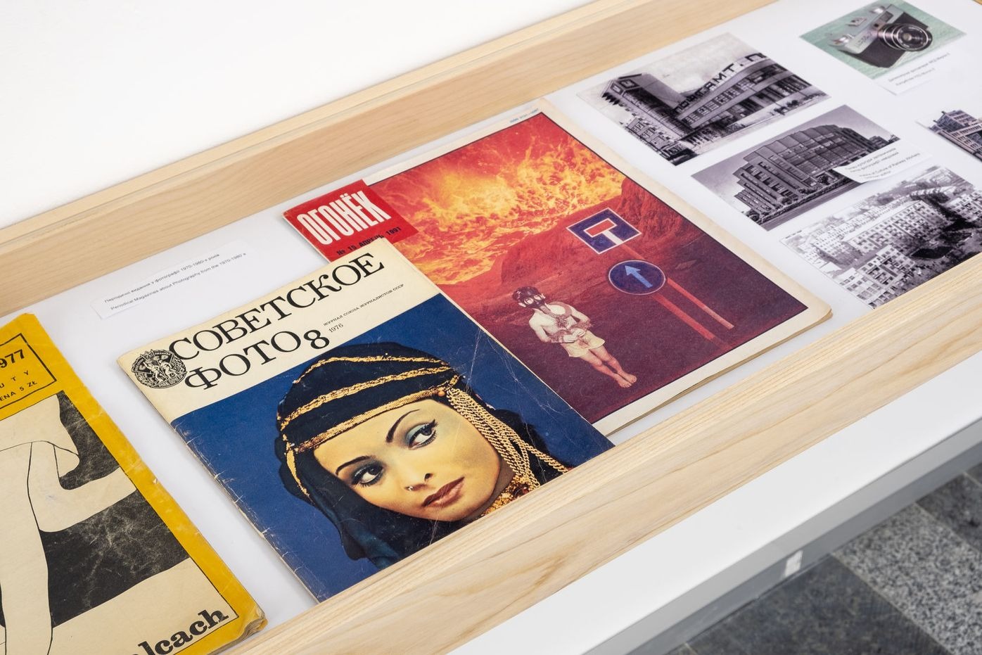 Вітрина з архівними матеріалами, присвяченими Харківській школі фотографії