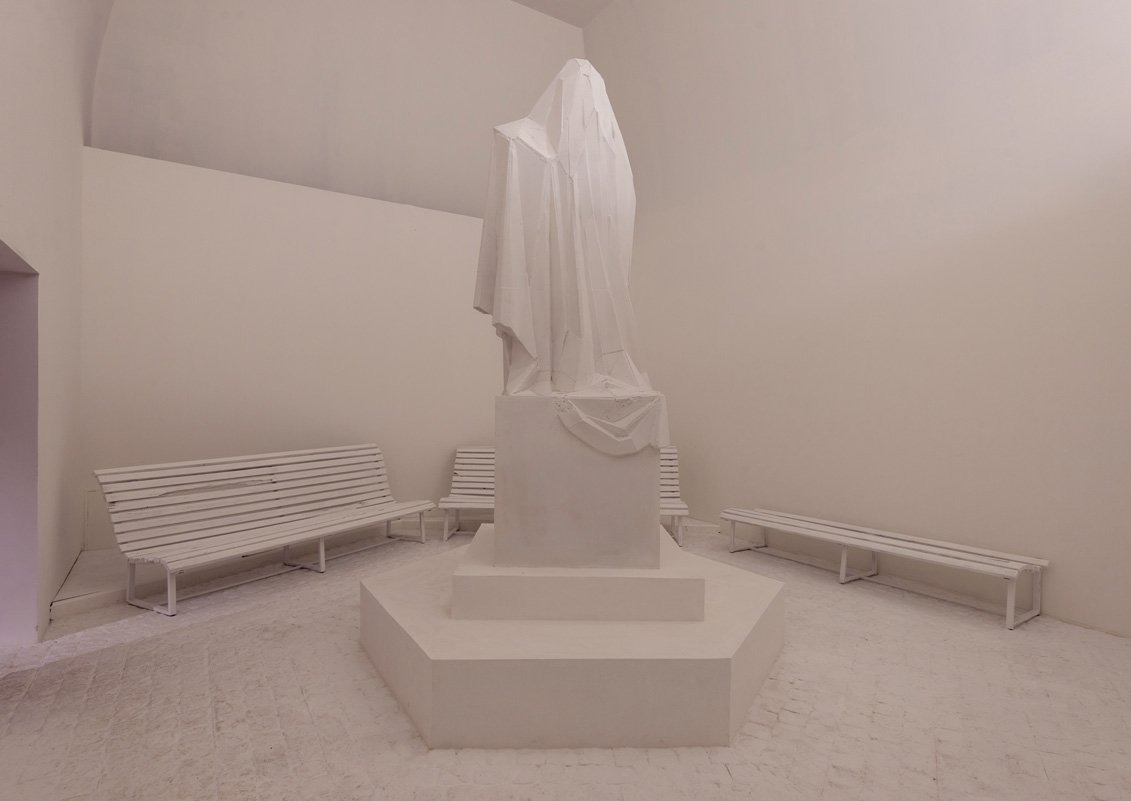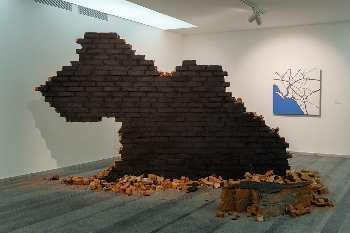 Скульптура виставляється разом із кількома роботами, виконаними з побитих і потрісканих кахлів. Тріщини на них – дуже природні, та водночас вони нагадують кордони, своєю присутністю перетворюючи кахлі, за словами самої Кадирової, на мапи.