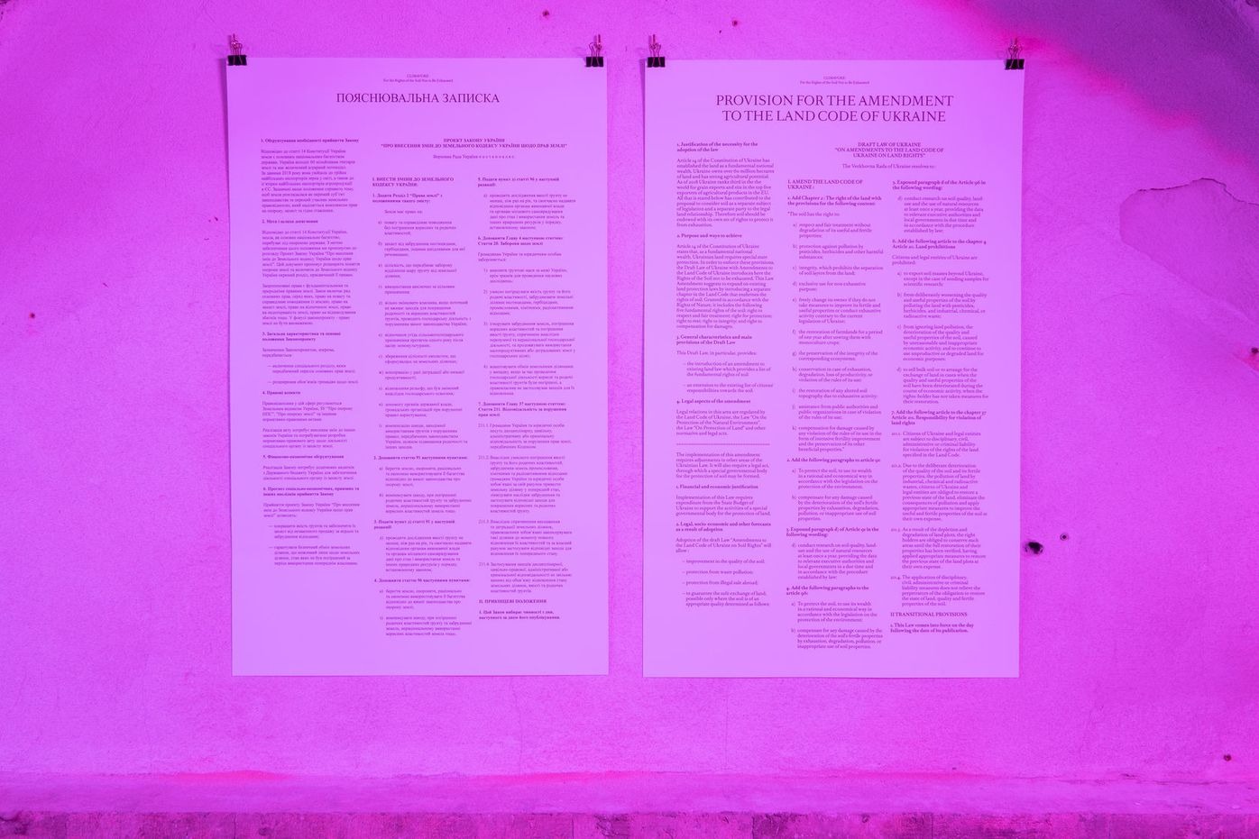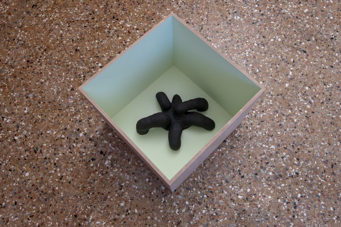 Деніел Тернер переважно працює із скульптурою, перетворюючи матеріали, об’єкти та середовища на тактильні чи атмосферні форми. Його роботи — продукт контрольованих процесів, які обігрують специфіку місця. Для Тернера форма є процесом трансформації. У своїму виборі матеріалів він звертається до знайомих, але при цьому обмежених середовищ, зберігаючи чуттєву прив’язку до географічних локацій, культурних асоціацій та людського контакту. Вінницька обласна клінічна психоневрологічна лікарня, заснована у 1987 році у Вінниці, Україна, є діючим лікувально-профілактичним закладом, що спеціалізується на амбулаторному лікуванні та профілактиці психіатричних і неврологічних захворювань, а також нейрохірургії. Для цієї виставки Тернер створив дві скульптури, натхненням для яких стала ця установа: в результаті каліброваного процесу обробки середовища художник відібрав, архівував і переплавив одну метричну тону залізних ліжок із лікарні на дві концентровані форми.