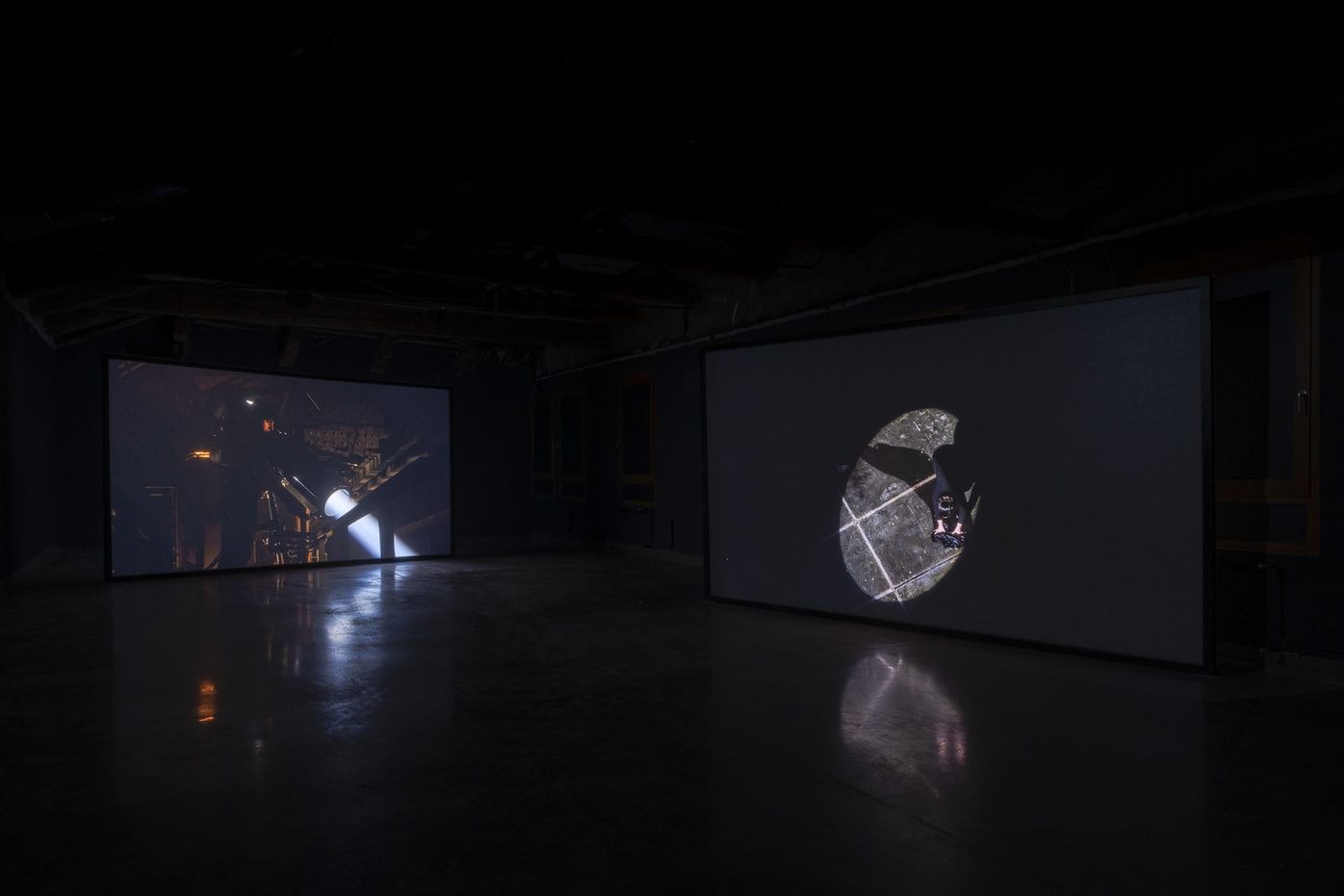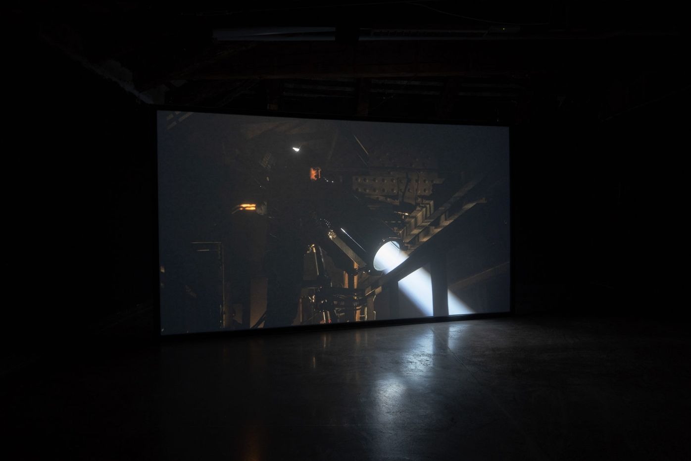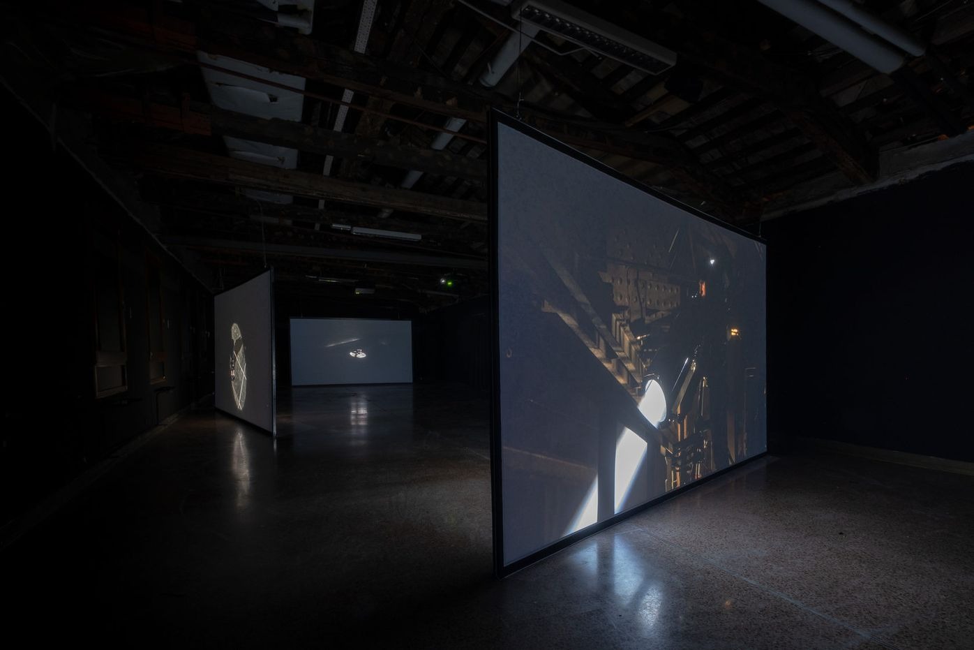 Емілія Шкарнуліте досліджує мінливу межу між документальним і художнім, між екологічними та космічними силами, розглядаючи будь-які нелюдські і постлюдські масштаби в глибині простору і часу. Робота «t1⁄2» продовжує тему постлюдської міфології у художній візуальній медитації про сучасну науку з точки зору майбутньої археології. Назва відсилає до символу, що позначає «період напіврозпаду» – термін, що широко використовується в ядерній фізиці для описання радіоактивного розпаду. У роботі, представленій у вигляді масштабної відеоінсталяції, постає архітектура, сконструйована художницею за допомогою 3D-сканерів дистанційного зондування і дзеркальної стелі, що запрошує у мандрівку епічним географічним ландшафтом.