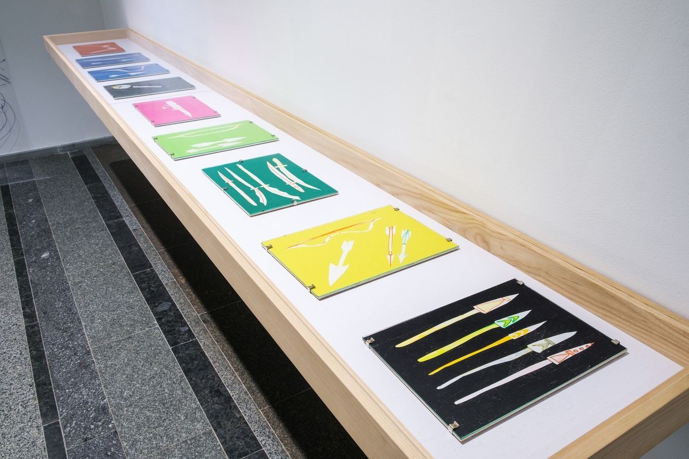 Художня практика Жолобецької складається з численних серій – графічних творів та живопису, в якому вона експериментує з кольором та його формою. На виставці представлені графічні роботи художниці.