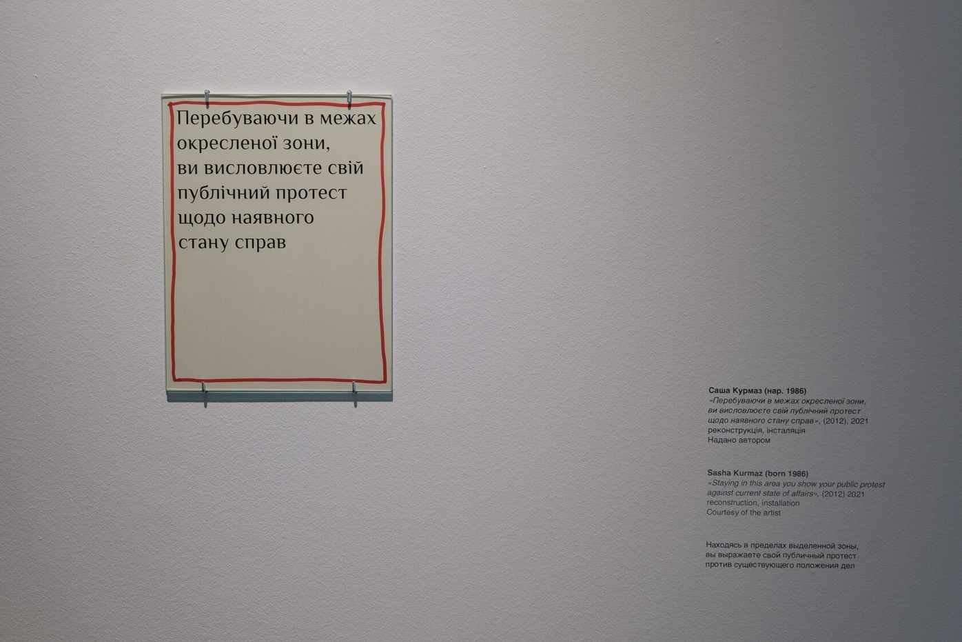 «Перебуваючи в межах окресленої зони, ви висловлюєте свій публічний протест щодо наявного стану справ» (2012, 2021)