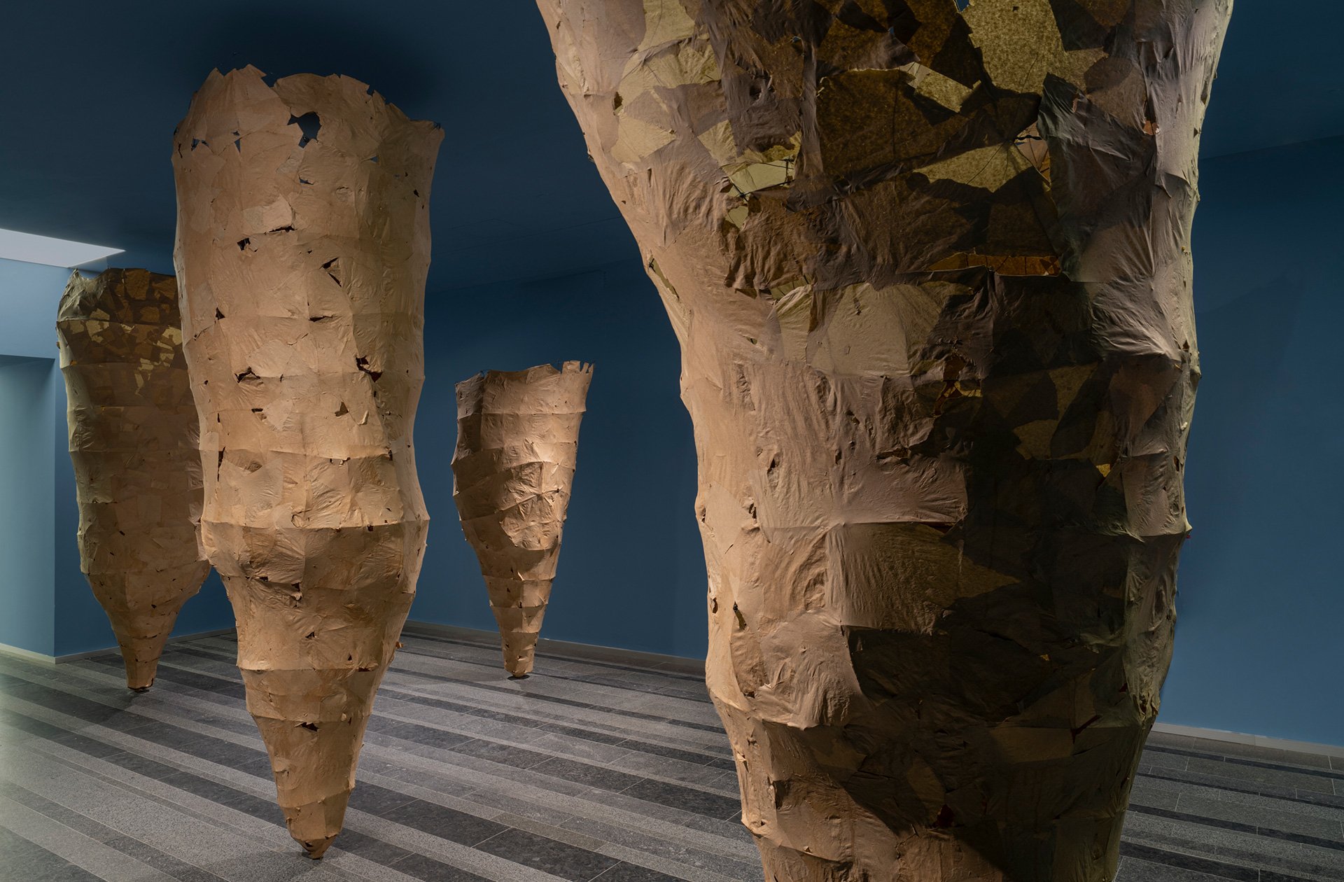 Тамара Турлюн створює масштабну інсталяцію «Шкуринка», що нагадує чи то сукупність ємностей для рідин, чи то витягнуті жіночі груди або ж квіти наприкінці цвітіння. В основу роботи художниця закладає власне спостереження за сім’єю, в якому розкриваються теми виснаження у турботі та зв’язку поколінь. Об’єкти, які левітують у просторі, відтворюють безпечний притулок, який створюють рідні для своїх нащадків, та демонструє ціну, яку вони платять за нього.