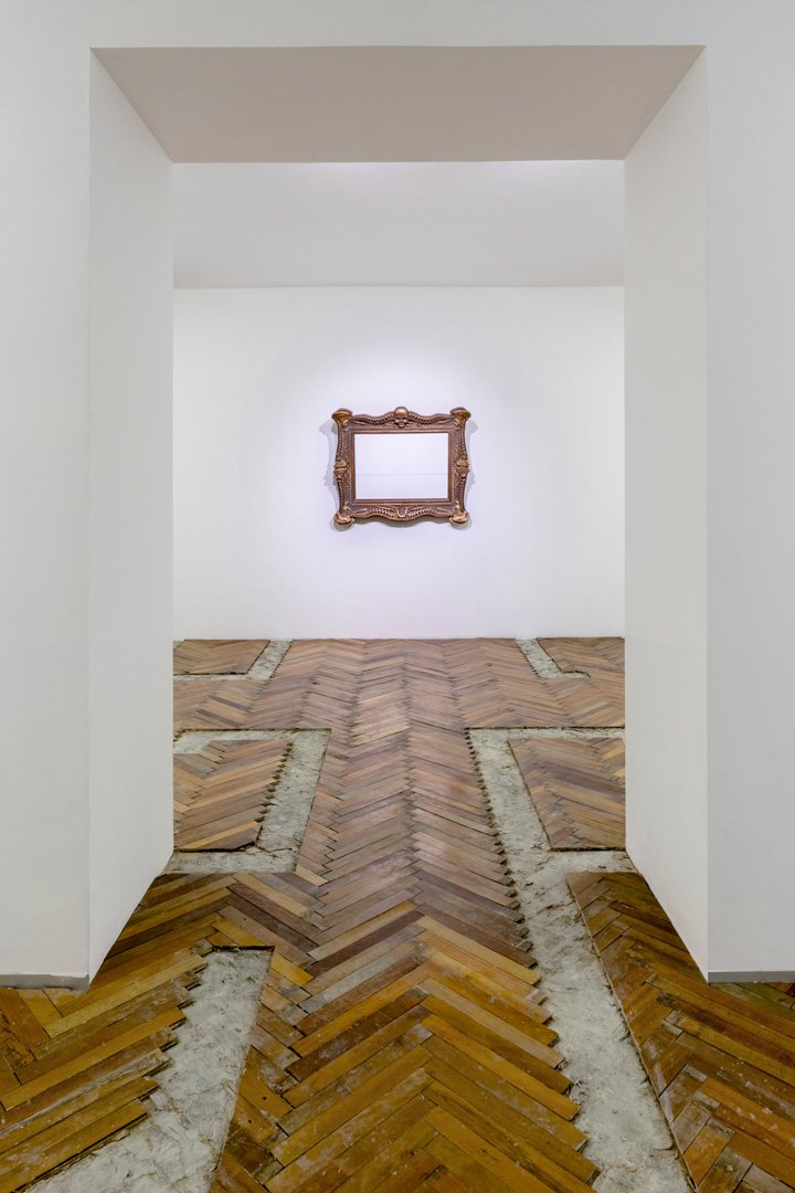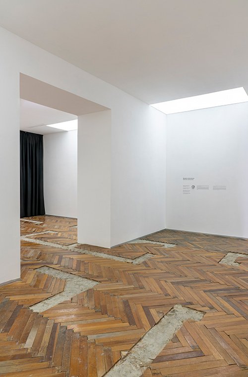 Простір, яким курсує глядач_ка, спонукає замислитися про виклики, з якими стикаються українські музеї в умовах війни: закриті та евакуйовані колекції, фізична руйнація будівель. Фрагменти паркету нагадують про стіни музеїв, які опинилися на межі зникнення через ворожі обстріли або недбалість. Можливо, тут колись могли стояти стіни музею сучасного мистецтва? Проте за тридцять три роки незалежності України такий музей не було створено, що залишає відчутну порожнечу в культурному просторі.