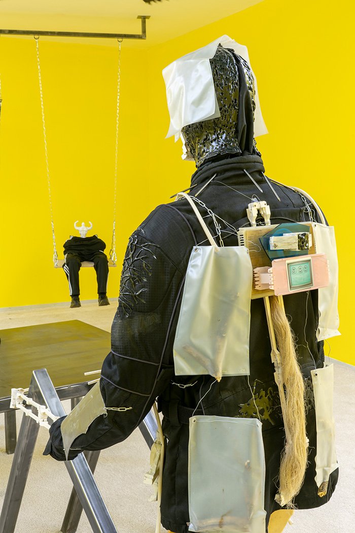 Болса розкриває вразливі сторони особистості через свого аватара — химерного персонажа у вбранні. Масивний костюм на металевому каркасі нагадує про захист, що раніше приховував вразливість власника за фасадом агресії. Інсталяція наче запрошує аудиторію присісти за стіл і розпочати діалог. Голос, що лунає з костюма, заохочує до розмови, ділиться передбаченнями, компліментами чи особистими історіями.