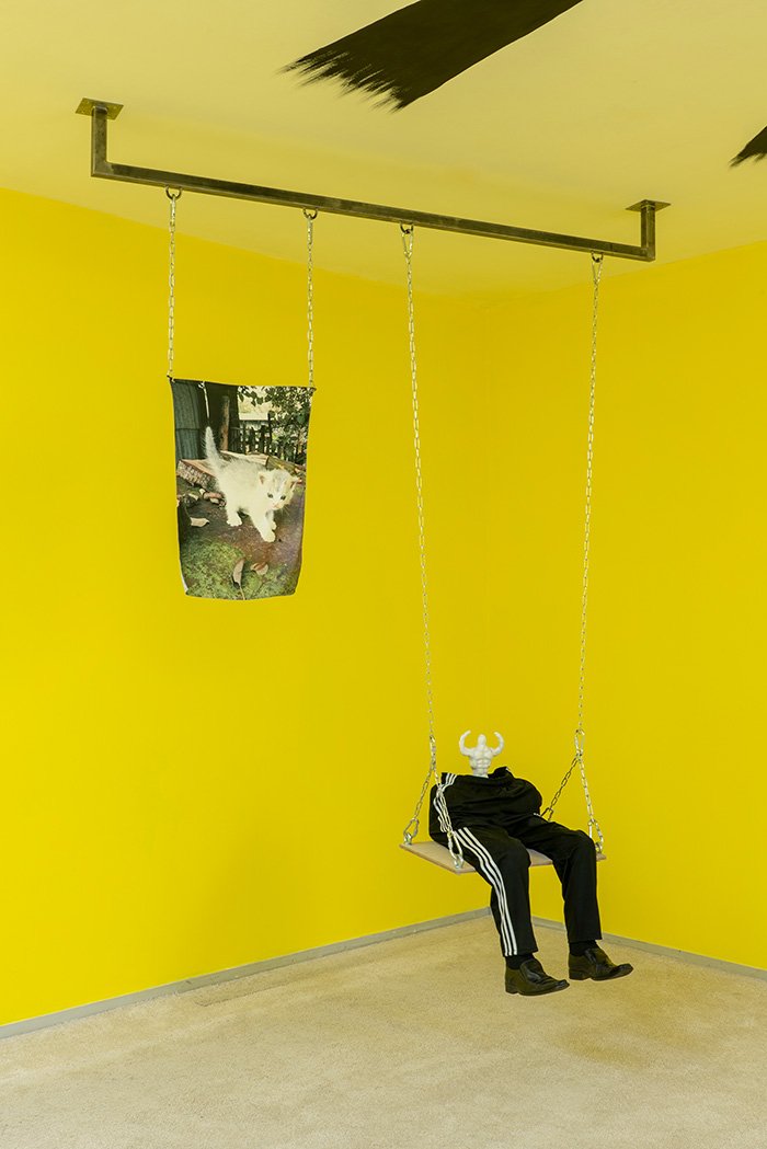 На гойдалці сидить друга половина костюма — ноги, з яких виростає нове тіло майбутньої сильної й доброї особистості. Елемент дитячого майданчика відтворює безтурботну радість дитинства та доповнюється фотографією кота, що жив у селі художника.
