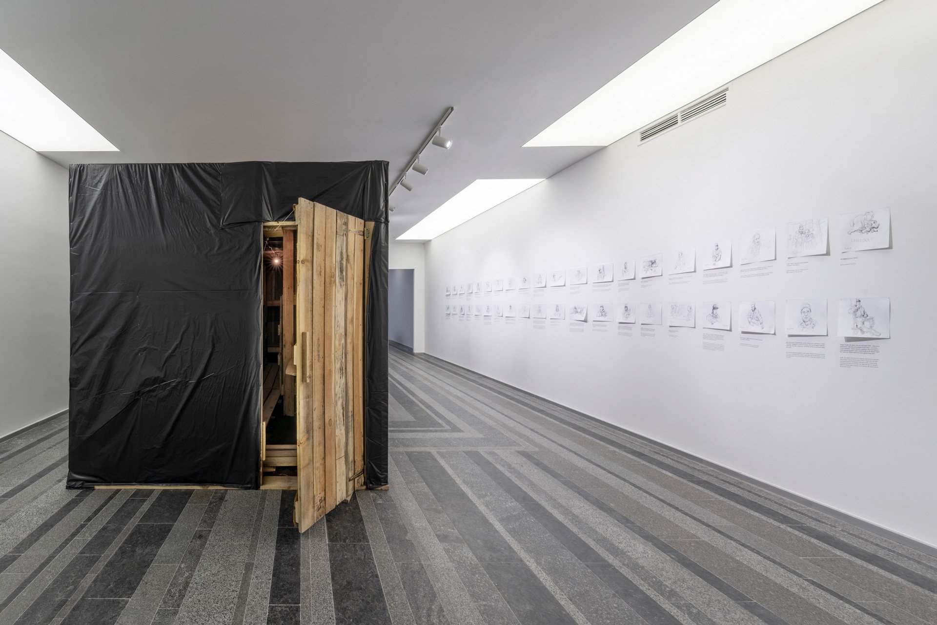 Інсталяція Юрія Болси «Завжди хотів бути тут» створює ілюзію домашнього та комфортного простору, який сюрреалістично трансформується під впливом присутності художника. Через три взаємопов’язані елементи він досліджує можливість змінити свою особистість, поетапно відтворюючи кожен із кроків уявного переродження.