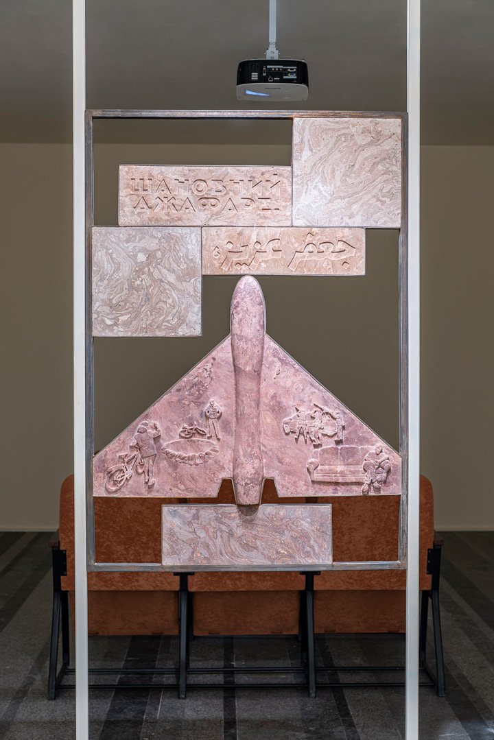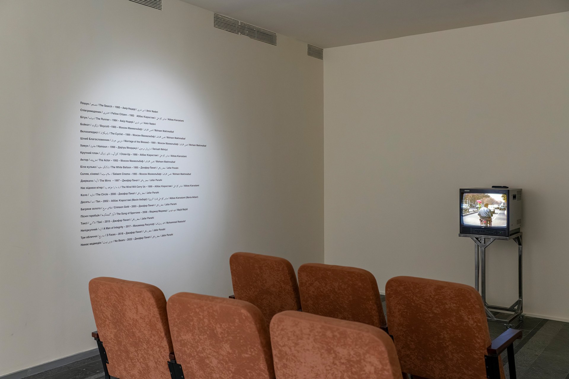 Рельєфний постер з мармуру демонструє кадри можливого сюжету: Джафар Панагі сидить на дивані, в той час як позаду нього мобільна група збиває ціль у небі над Україною, або ж батьки художника їдуть велосипедом у поле, аби побачити вирву від збитого дрона. Розбиваючи тишу очікування фільму, простір наповнює звук заведених двигунів із нової відеороботи Ходака. Візуальний ряд складається з підбірки сцен, вирізаних з іранських фільмів, де люди їздять на мопедах.