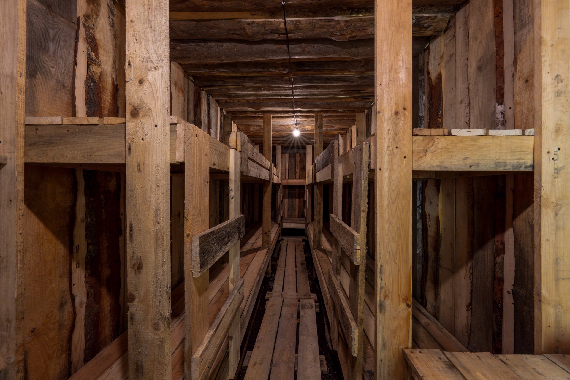 дерев’яні балки та дошки, поліетилен, світлодіодні лампи, піч-буржуйка, земля, радіоприймач, аудіокомпозиції «Тристан» та «Триптих митарства» Терехова Артема (позивний Ерудит), пластикова пляшка з водою «Прозора», олівець і ручка на папері