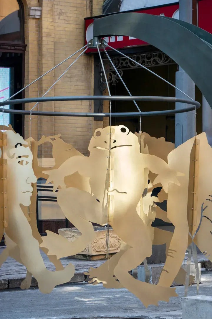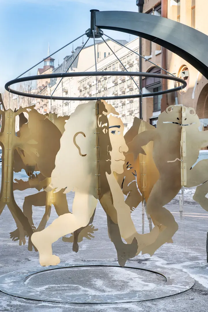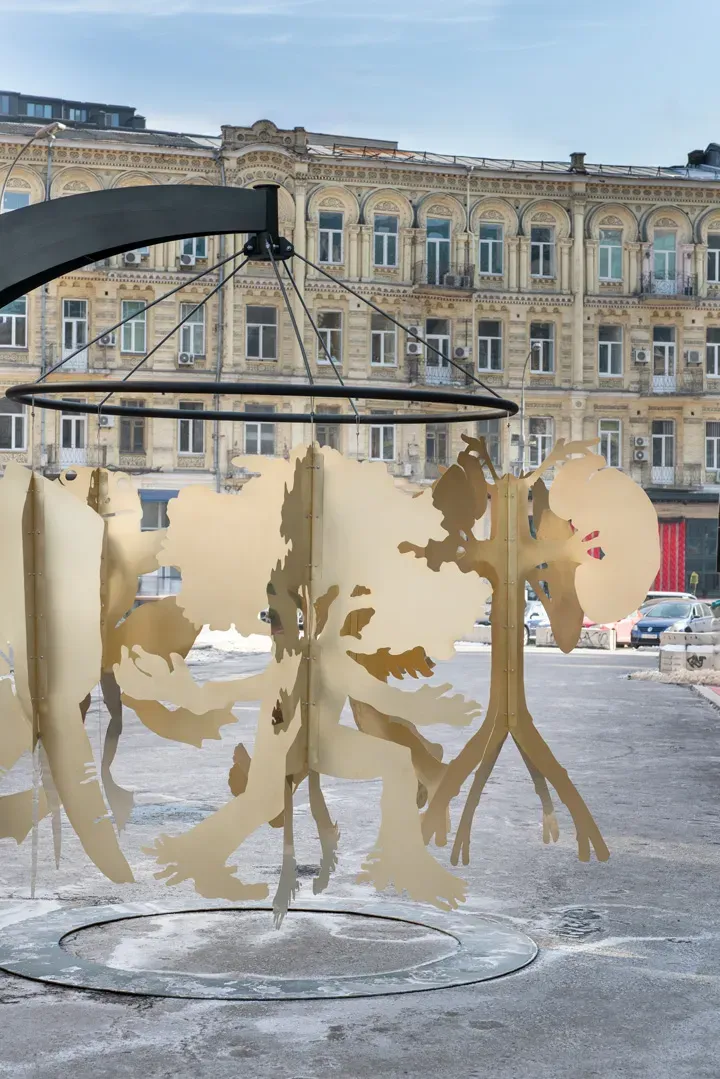 Робота «Музика вітру» Дар’ї Молокоєдової своєю формою відсилає до музичного інструменту, що грає від струменів повітря. Втім, мрійлива композиція, контрастуючи з шумною Бессарабською площею, радше підсилює сюрреалістичну атмосферу буденності країни у війні, аніж гармонізує.