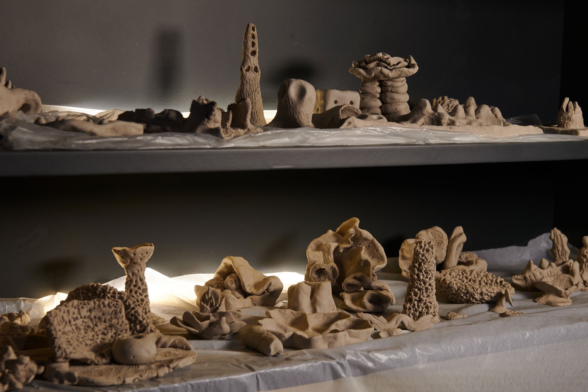 Patrix, 2025глиняні фігурки ручного формування (МКФ-2, Словʼянськ), ангоб (Часів Яр), випал, відеодокументація