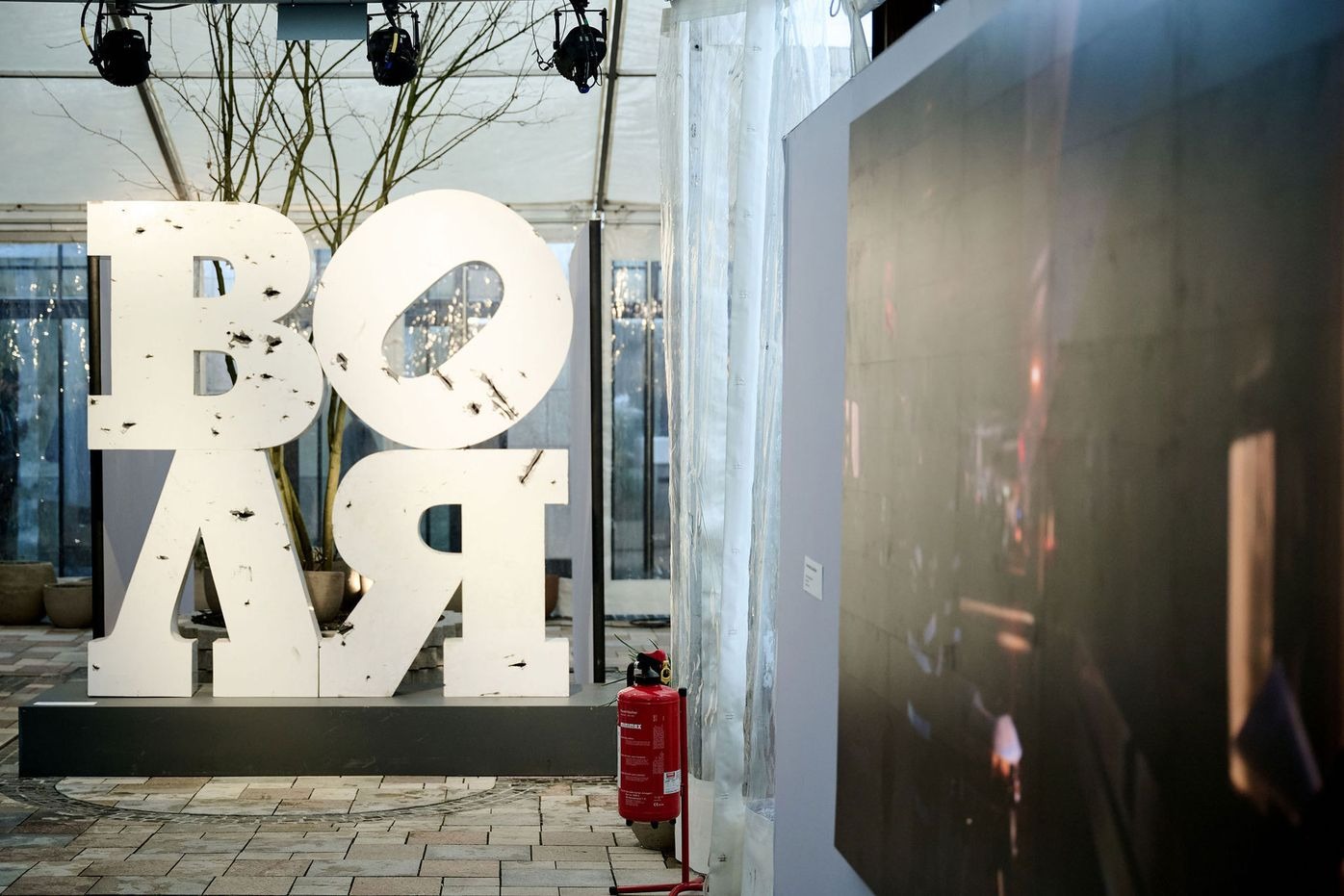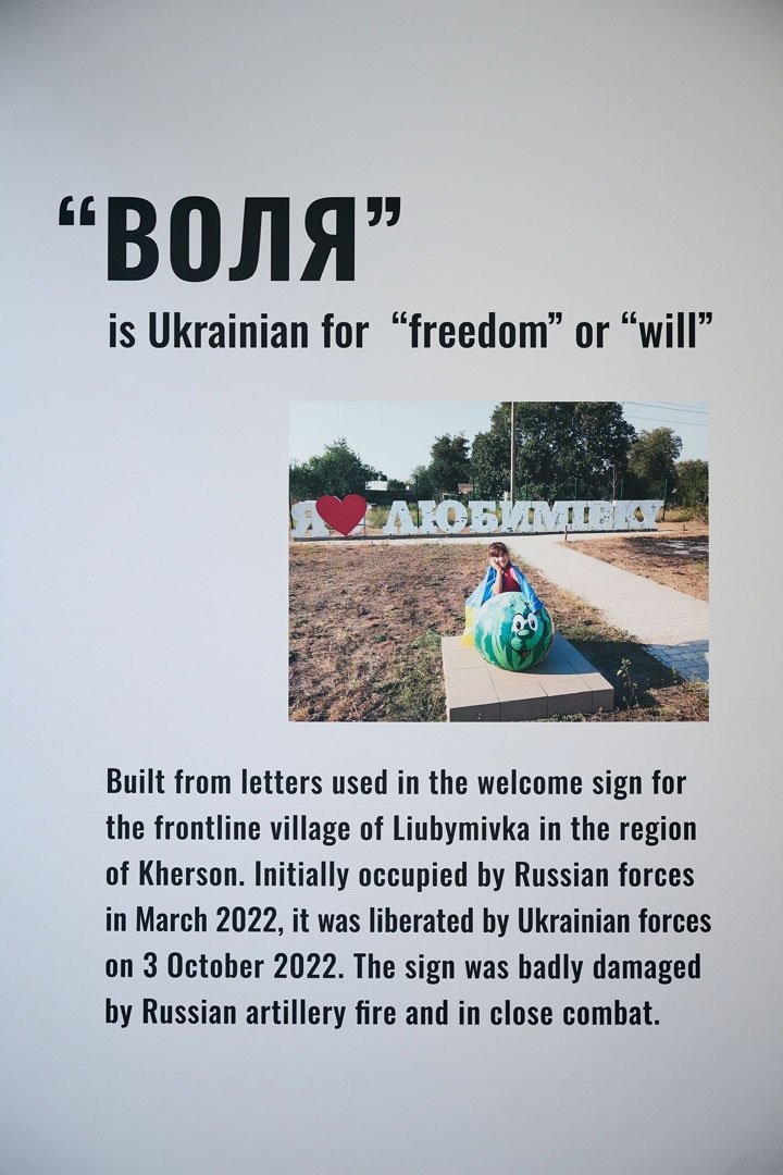 Загроза для Заходу та всього світу найяскравіше виражена в роботі Олексія Сая «Воля». Інсталяція створена з літер зруйнованої під час боїв стели прифронтового села Любимівка на Херсонщині.
