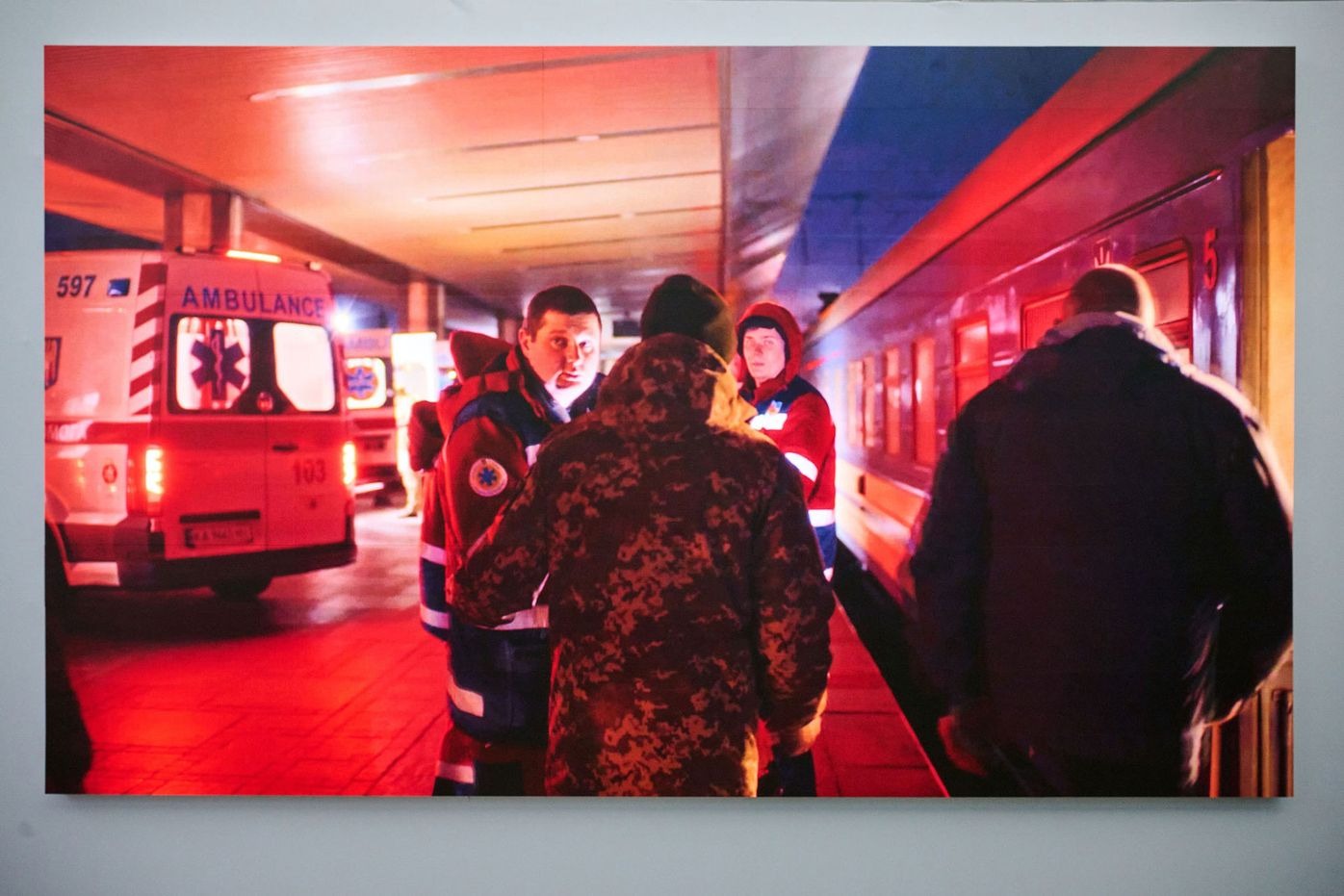Ярема Малащук та Роман Хімей задокументували прибуття евакуаційних потягів із пораненими солдатами. Це відлуння світових воєн та водночас нагадування іноземному глядачу про українські реалії. Відеоробота також слугує своєрідним натяком на те, що чекає Європу, якщо Україна зазнає поразки.