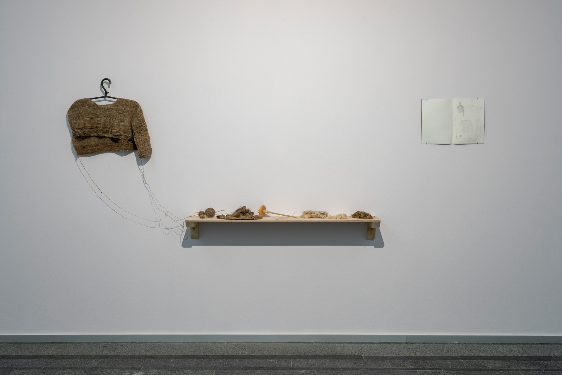 У своїй роботі «На повернення» Анна Звягінцева звертається до казки Ганса Крістіана Андерсена «Дикі лебеді». У центрі цієї оповіді — головна героїня, що намагається врятувати братів-принців, яких перетворила на диких птахів зла мачуха. Подібно до неї, художниця вʼяже сорочку з кропиви, покликану захистити її близьку людину, яка наразі перебуває на фронті. Такий жест турботи, виражений у дбайливому плетінні нитки, з одного боку, стає способом полегшити стан чекання, а з іншого — можливістю відновити звʼязок з іншим, зберегти його життя, наділивши сорочку символічною силою за допомогою магічного замовляння. Розпочавши роботу над нею у 2023 році, Звягінцева поступово довʼязує нові фрагменти, перетворюючи процес на розтягнутий у часі ритуал.