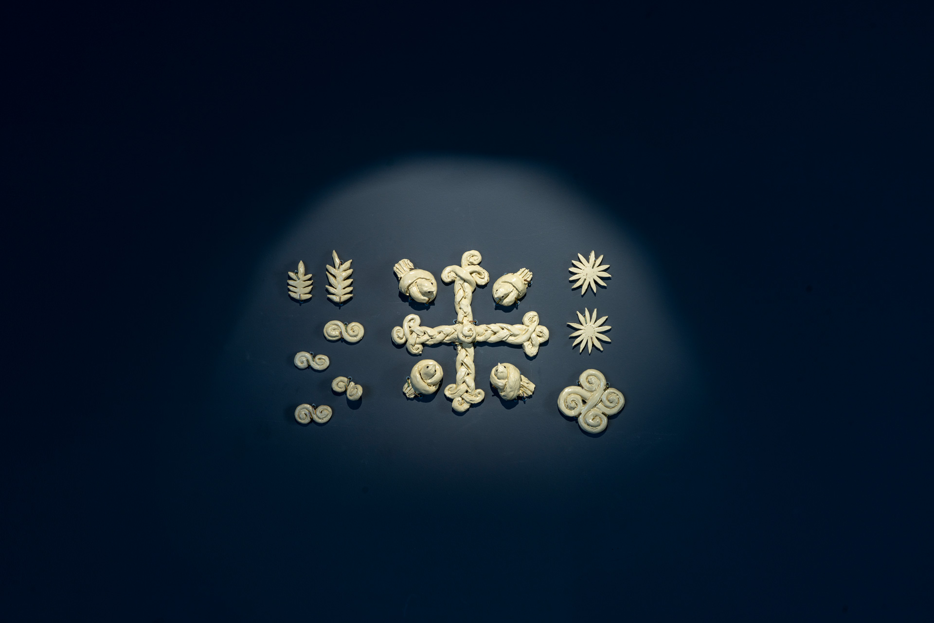 У своїй роботі «Незапечене оздоблення» Лада Вербіна звертається до цього виміру традицій. Зокрема вона цікавиться символічним значенням форм та орнаментів, що є неодмінною частиною цих виробів. Осмислюючи досвід перебування на Закарпатті на початку повномасштабного вторгнення та спостереженням за локальними традиціями, художниця неодноразово зверталася у своїй практиці до теми хліба й випікання. Зокрема, до важливості ручної роботи та тяглості традицій, що уможливлює передачу знань від покоління до покоління, де кожен візерунок чи патерн може зберігатися незмінним або набувати нових форм у сучасному переосмислені. Сам процес випікання тут перетворюється на ритуал, у якому кожна дія має вагу й священний сенс.