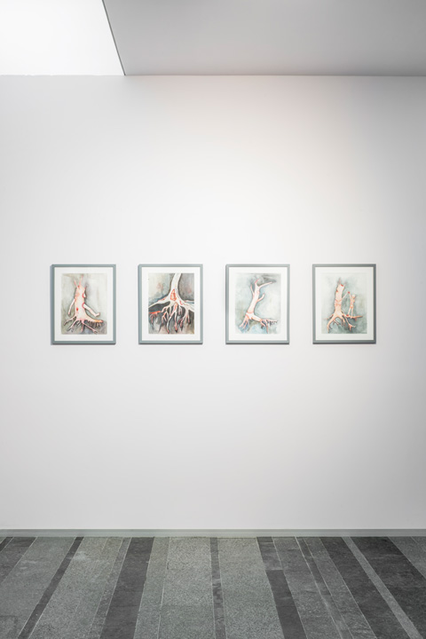 На малюнках художниці з серії «Спроби повернення тіла» зображені дерева, з яких проростають частини людського тіла. Грань між людською плоттю і деревом тут подекуди різка й болісно відчутна — вона кривавить, оголюючи свіжі шрами, ніби зрощення ще не завершене. Ці образи не романтизують перетворення, а радше фіксують його як процес зміни. У цьому злитті немає спокою — лише відчайдушна спроба повернути агентність тим, кого було втрачено, і знайти форму, здатну встояти перед насильством війни.