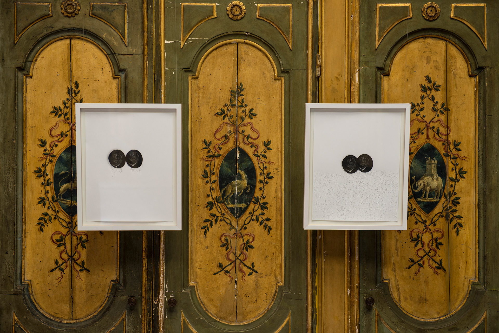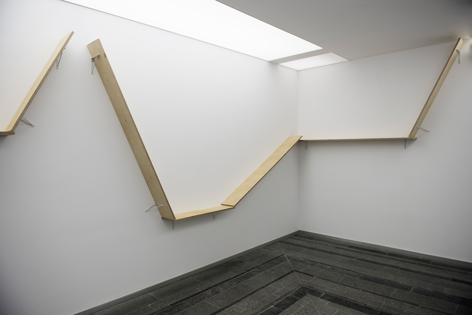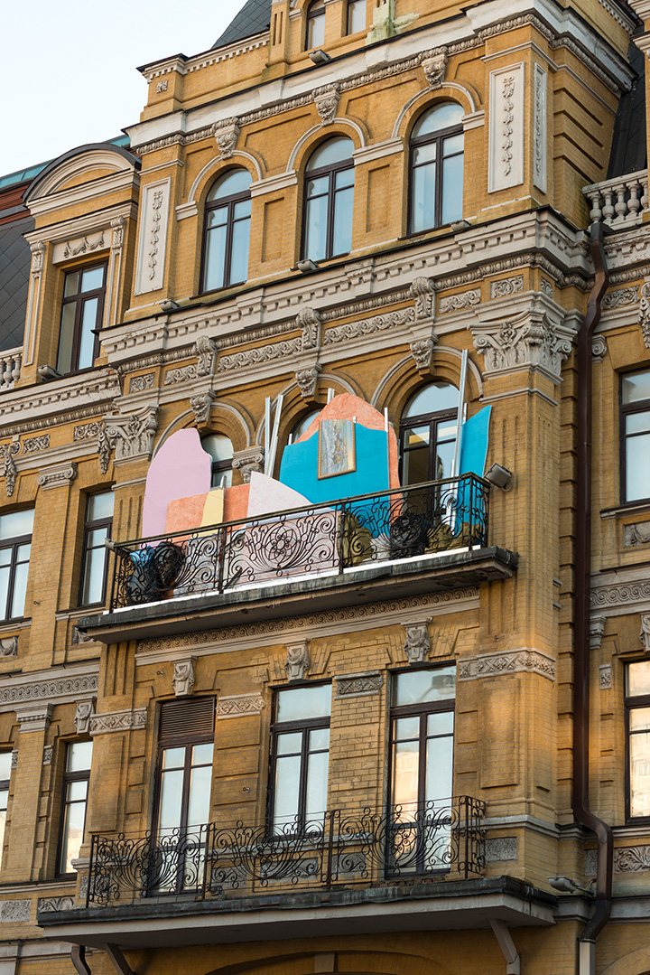 2013 Фотокопії, клей для шпалер (ліворуч). Від квадрата до зірки, 2010. Дерево, гвинти, фарба (праворуч)