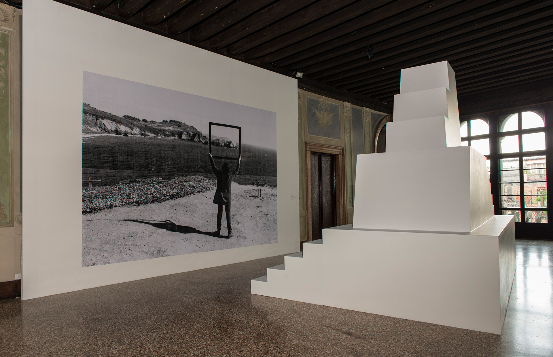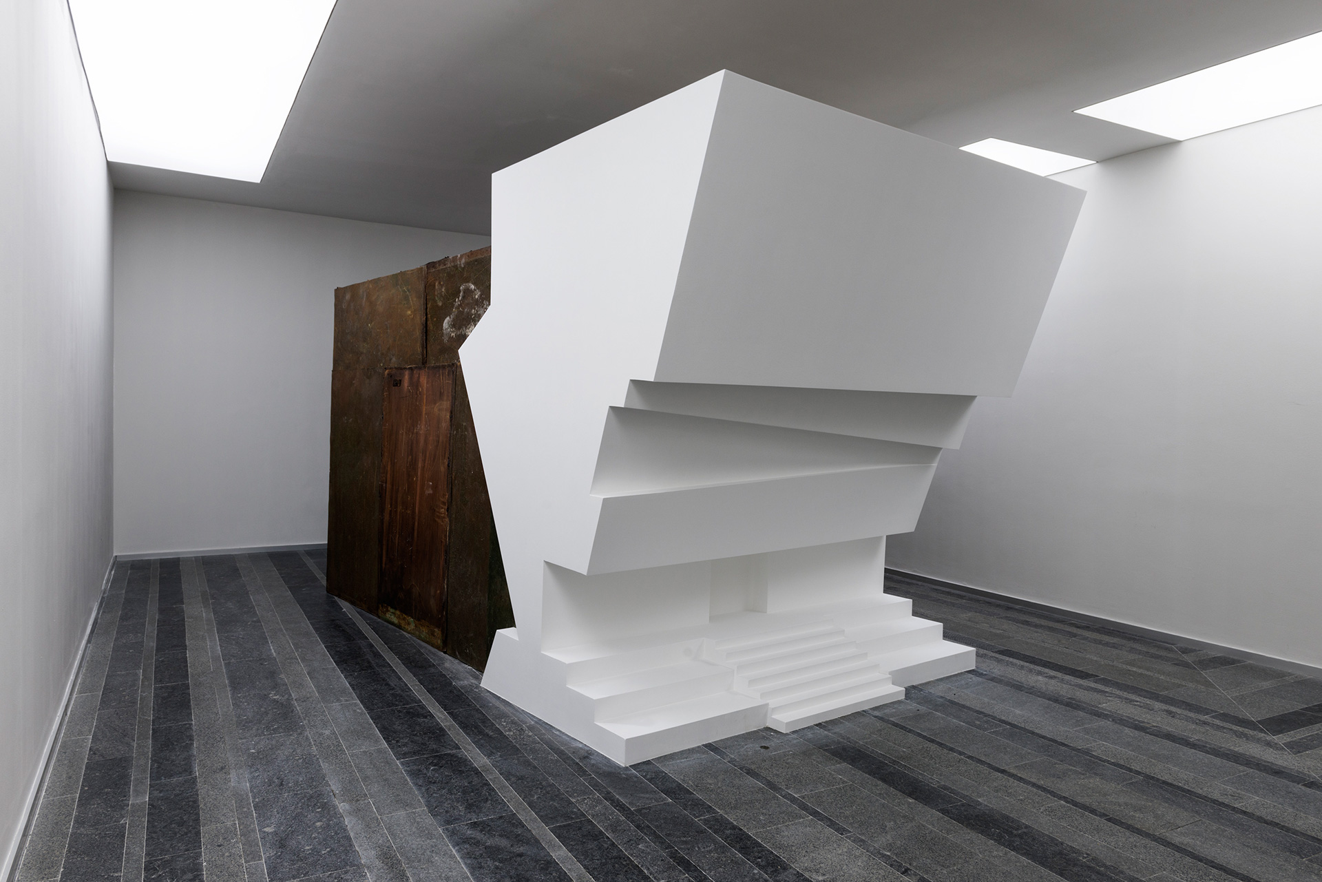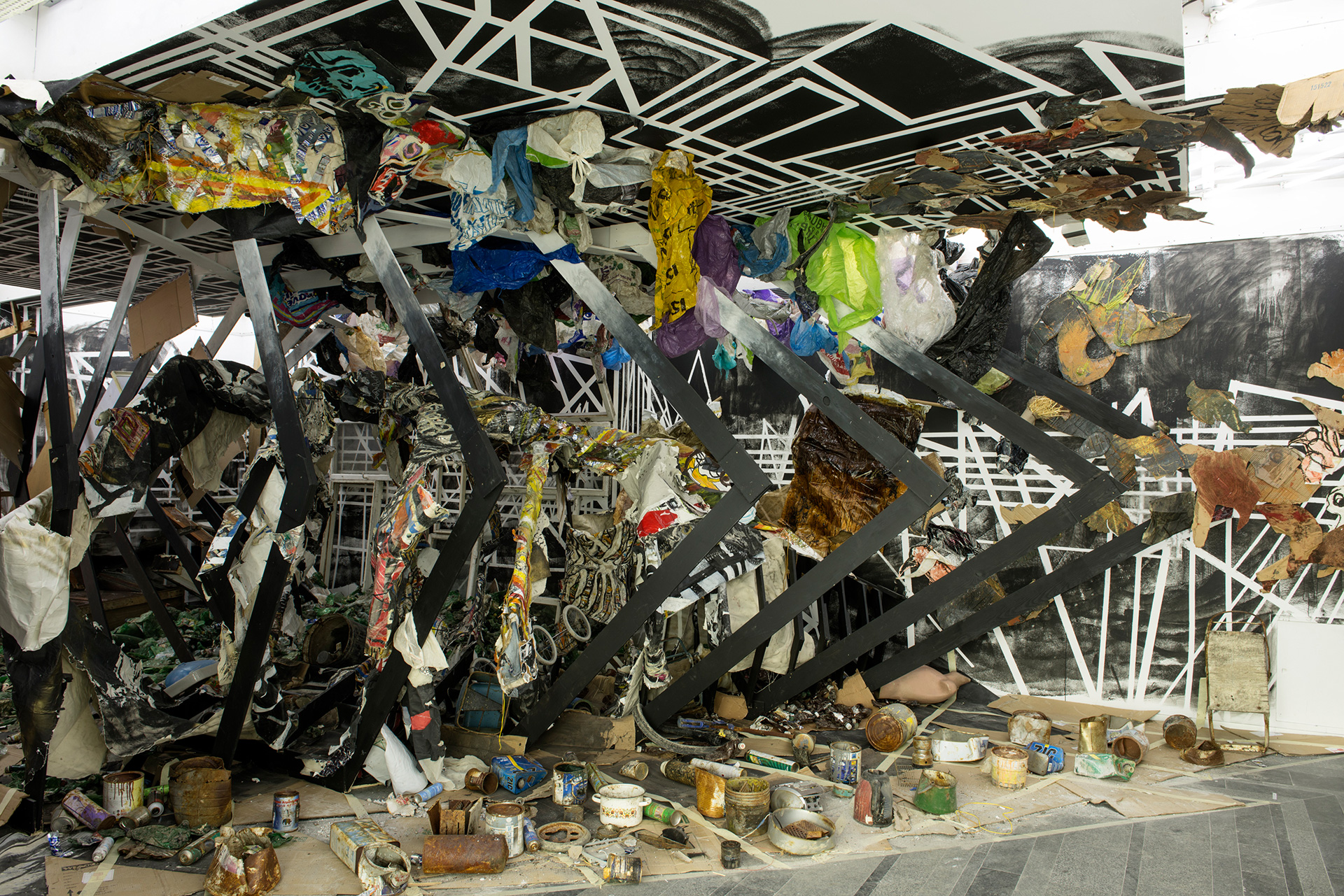 2013 Фотокопії, клей для шпалер (ліворуч). Від квадрата до зірки, 2010. Дерево, гвинти, фарба (праворуч)