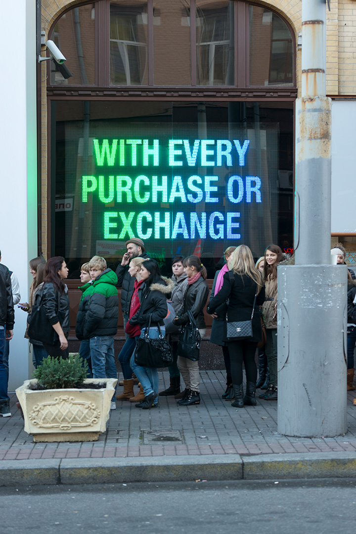 Скловолокно, 346 пластикових знаків, лямбда-принт.