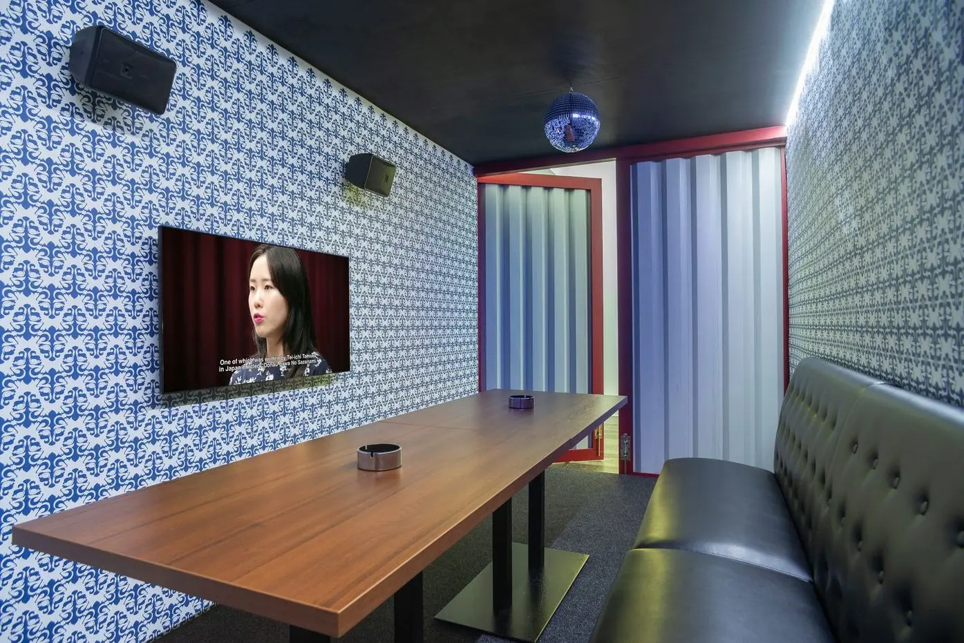Мультимедійна інсталяція: вантажний контейнер, шпалери, фотографія у рамці, плечики, попільнички, дискобол, світлодіод, килим, дивани, столи, сценарій, відео. Створено за підтримки PinchukArtCentre Особлива подяка Тетяні Кочубінській і Олені Тороп