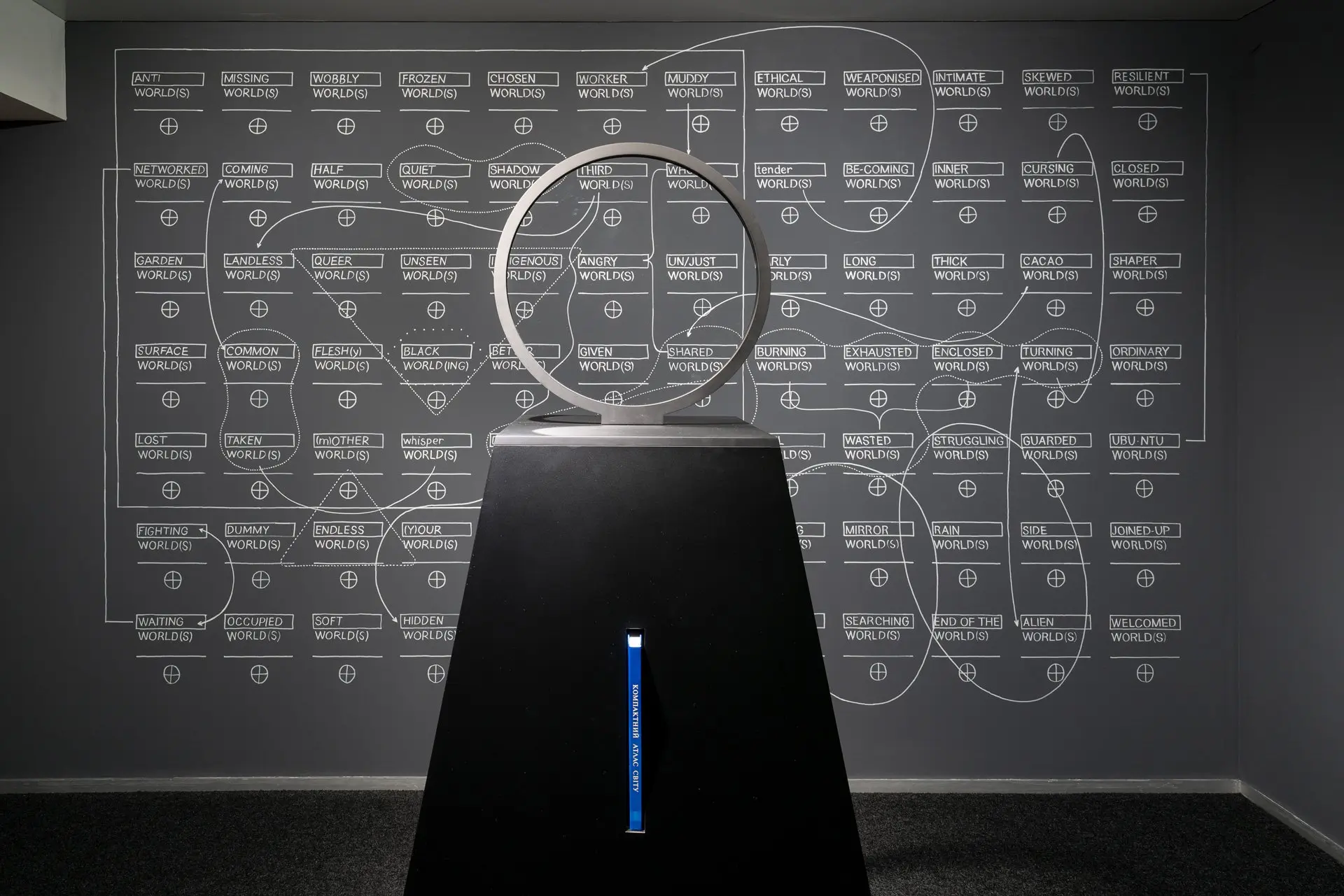 Піклування, 2024 скульптурні об’єкти, настінний розпис, 3-канальне відео, звук Без назви, 2024 3-канальне відео, 16’12’’ Надано художни_ками Створено за підтримки PinchukArtCentre М’який камінь із Лімпопо, 2024 тканина, перероблений полістирол, видання 5/6 Надано художни_ками та Goodman Gallery Створено за підтримки PinchukArtCentre та INSITE Шарнірний стіл 1, 2024 вільха, метал, пластиковий глобус Надано художни_ками та Goodman Gallery Створено за підтримки PinchukArtCentre Шарнірний стіл 2, 2024 вільха, метал, пластиковий глобус Надано художником та Goodman Gallery Створено за підтримки PinchukArtCentre Дискретний стелаж 01 (педагогіки), 2024 дерево, МДФ панель, метал, книги, тканина, холлофайбер Надано художни_ками та Goodman Gallery Створено за підтримки PinchukArtCentre та INSITE М’який камінь із Лімпопо, 2024 тканина, перероблений полістирол, видання 6/6 Надано художни_ками та Goodman Gallery Створено за підтримки PinchukArtCentre та INSITE Без назви, 2024 звук, 16’12’’ Надано художниками Створено за підтримки PinchukArtCentre Дискретна шафа 00 (вантаж), 2024 дерево, МДФ панель, метал, акрил, гума, книги, тканина, холлофайбер Надано художниками Створено за підтримки PinchukArtCentre Пояснювальні примітки 4 (до) планети (взаємозалежні), 2024 настінний розпис Надано художниками та Goodman Gallery Створено за підтримки PinchukArtCentre