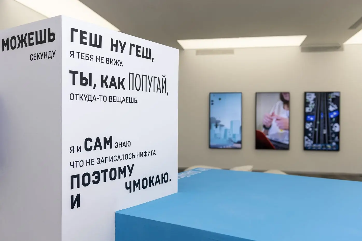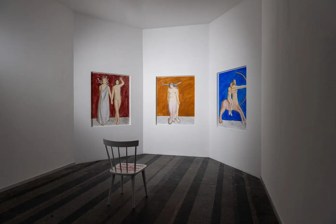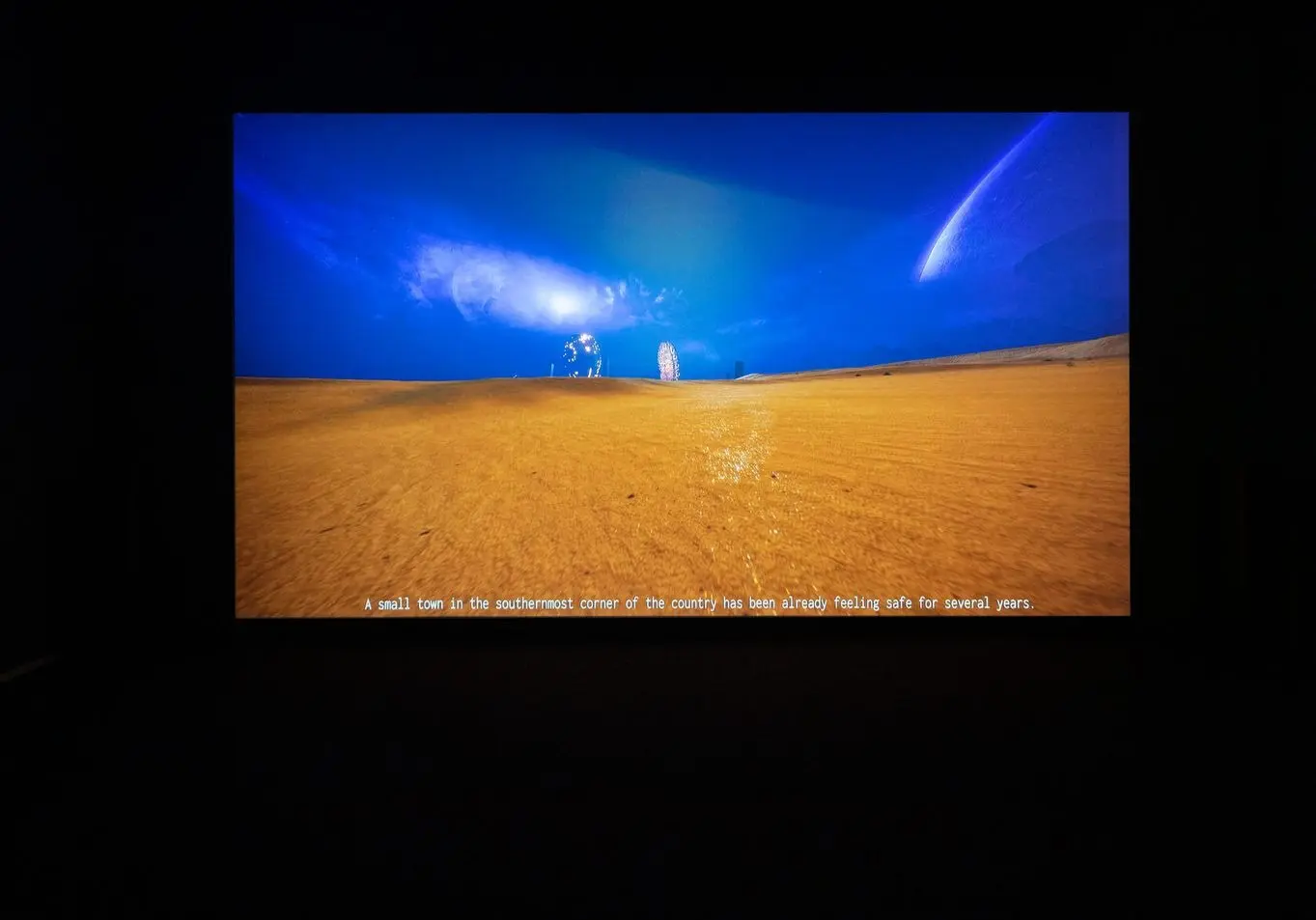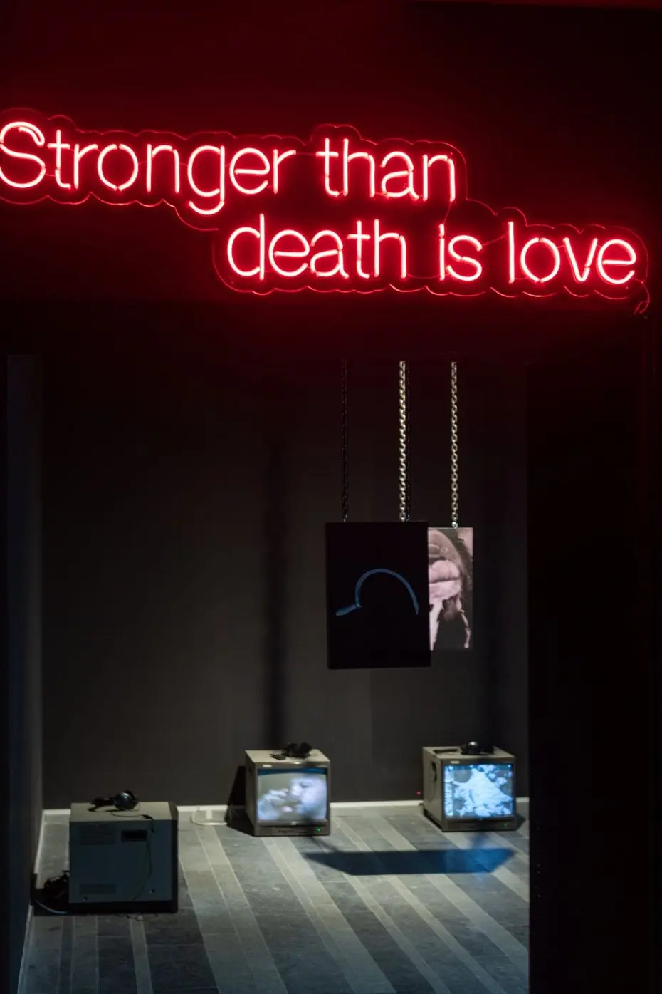 Відео, цифровий друк, неон. Надано художницею. Тривалість відео: 1 зала: 19′11″; 2 зала (зліва на право): 2′24″, 4′33″, 5′28″, 2′15″; 3 зала: 6′45″