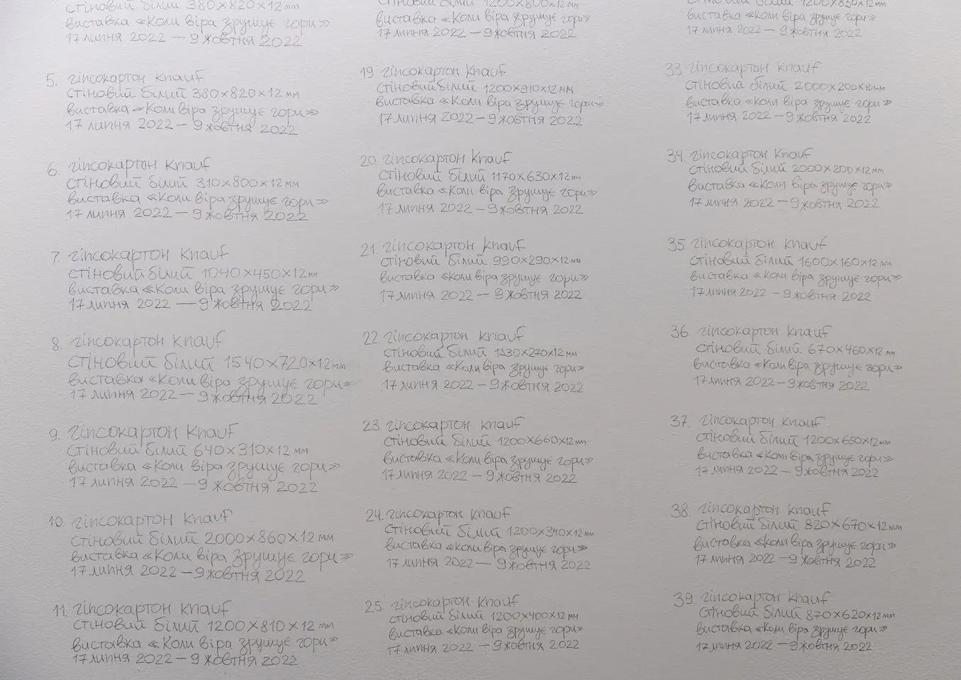 Ми зустрінемося знову, 2022 Відео, фотографії, об’єкти, текст. Надано художником. Напиши хоч раз на день, 2022 відео, 25.04.2022 – в процесі. Надано художником. Фотографії моєї мами, 2022 24 фотографії, цифровий друк, Hahnemühle Rag Baryta 315 gsm. Надано художником. Батько-вщина, 2022 10 об’єктів, текст. Надано художником.