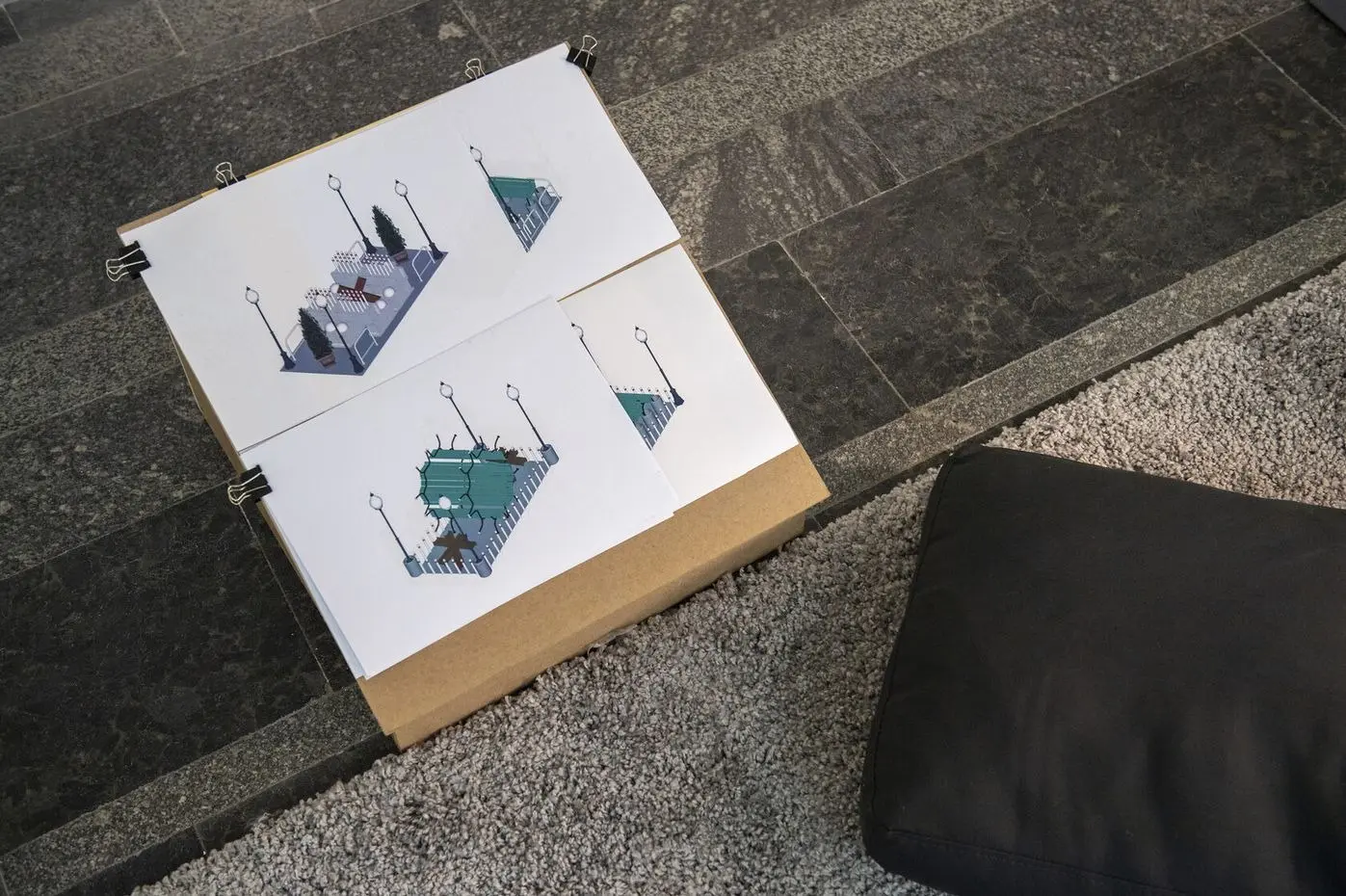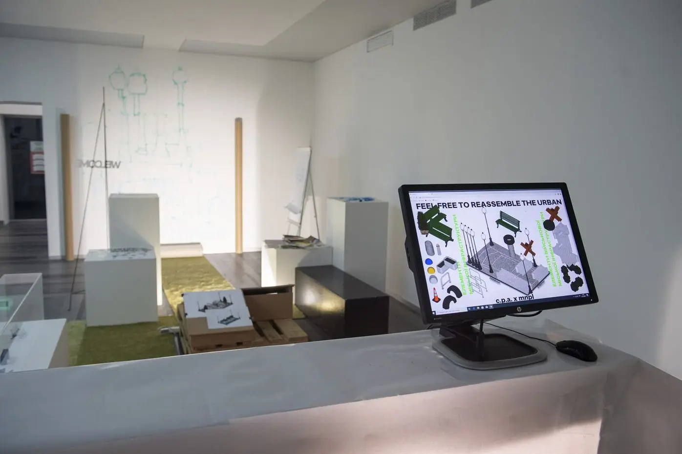 commercial public art x mnpl Реасамблювання урбанового, 2022 Елементи міської та військової міської інфраструктури. Надано художницею та художником. Створено за підтримки PinchukArtCentre. Воркшоп реасамблювання урбанового, 2022 Залишки з минулих виставок, об’єкти з кладової арт центру, 3D друк, цифровий друк, папір, самоклейка. Надано художницею та художником.