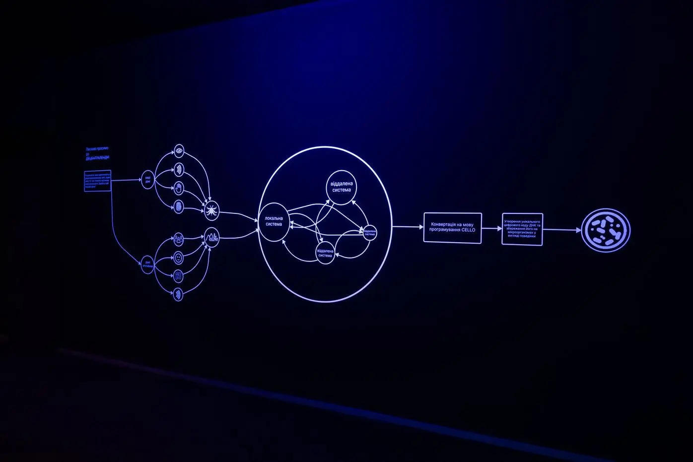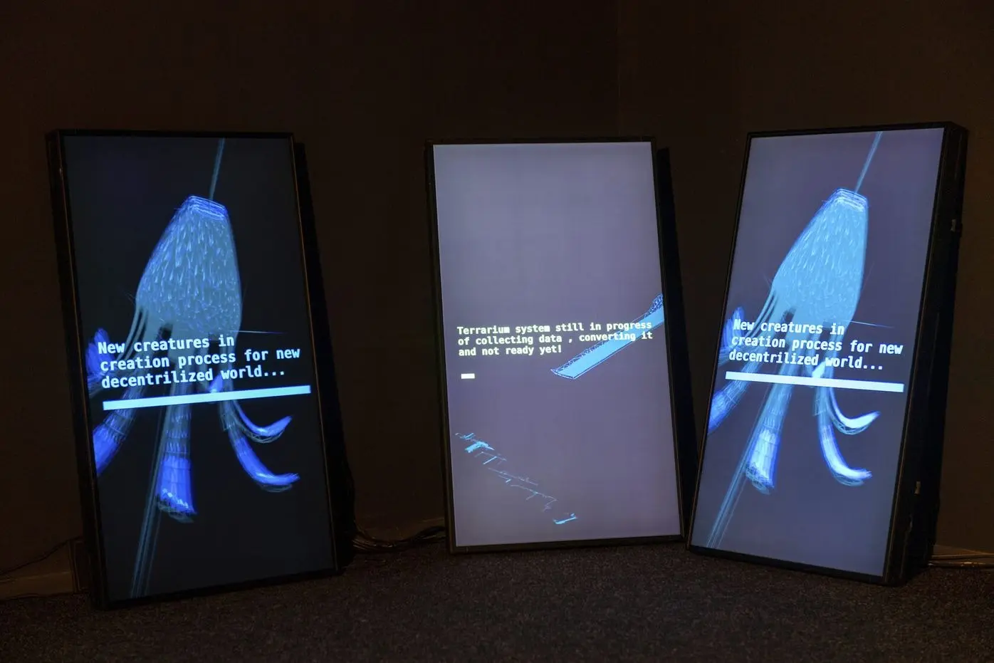 Цифрова симуляція в реальному часі, сканер відбитків пальців,сканер ока, мікрофон, веб-камери, ПК сервер, монітори, планшет. Надано художником. Монтаж виконано за підтримки Photinus Studio та Maajaam residency. Веб-системи та програмування – Данило Сябро. Налаштування сенсорів – Ігор Соколов. Дизайн та допомога у створенні музики – Дмитро Тентюк.