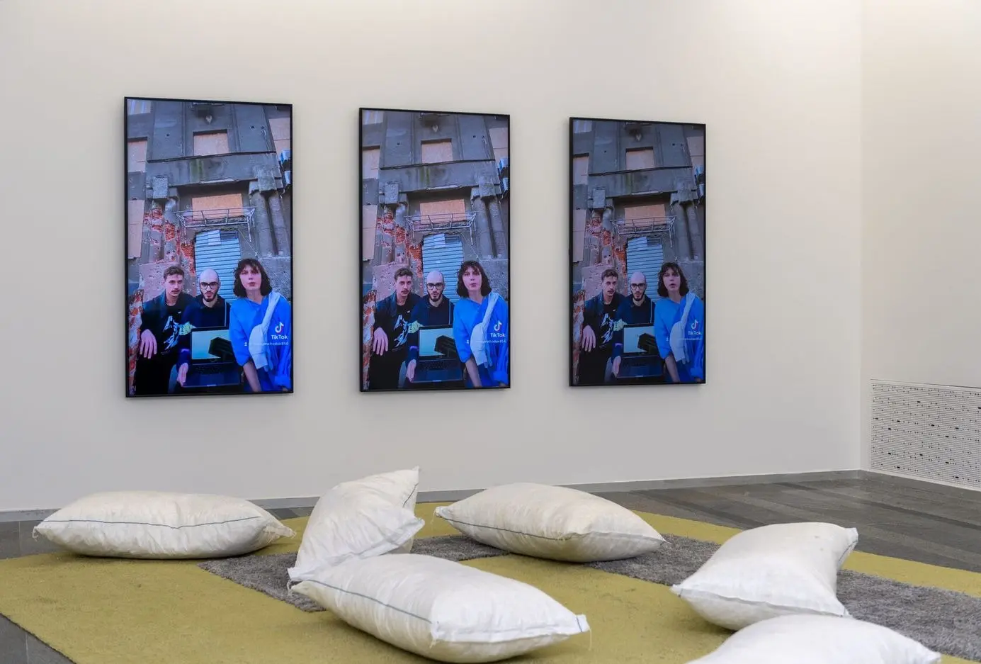 рьохканальне відео 23′33″, килими, подушки, конструкція з гіпсокартону. Надано художником.