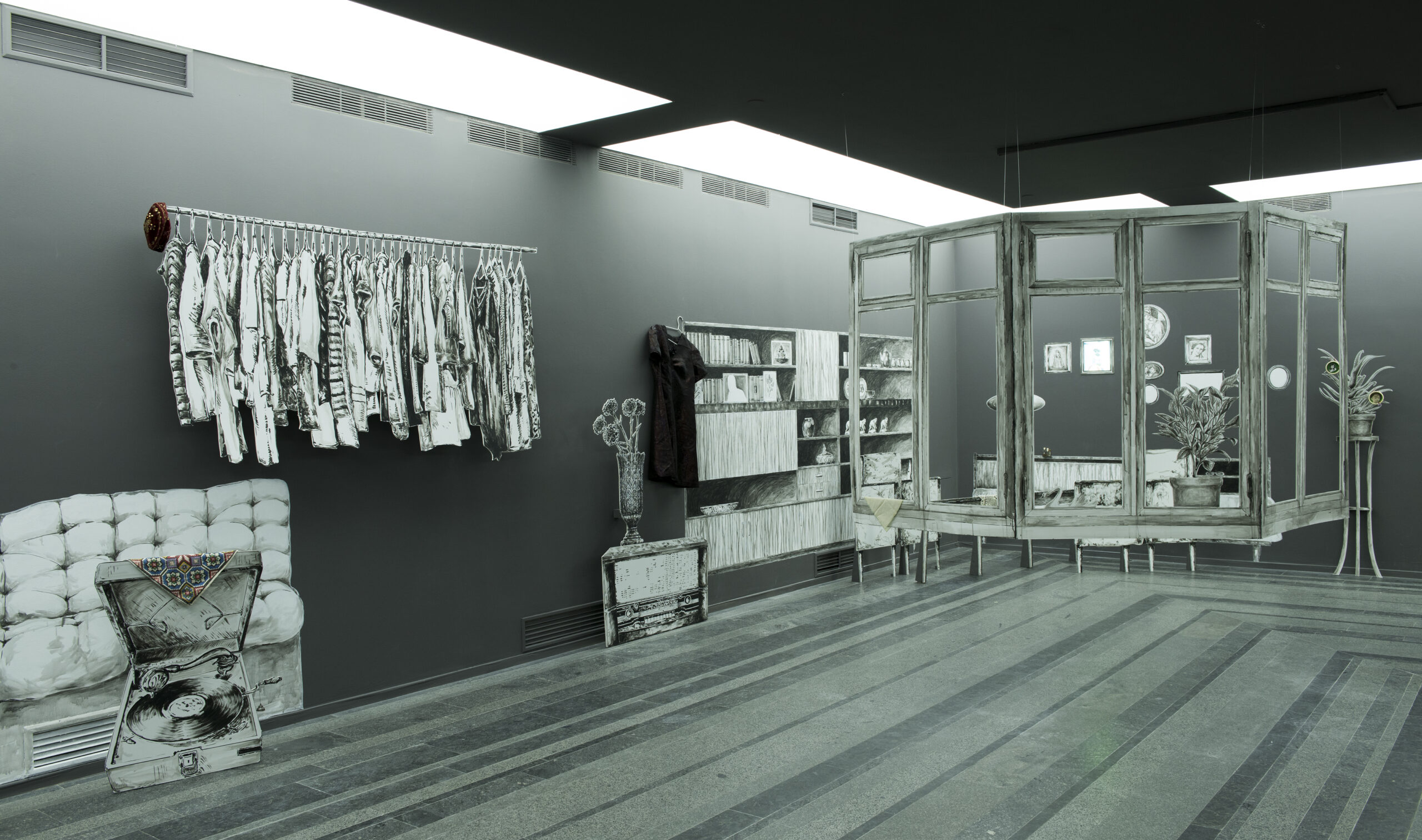 поліоб'єктне середовище: звукове та візуальне програмування, метал, дерево, скло, картон, гіпс, аналогова та цифрова апаратура, аудіосистема 6:0, світлодіодні ліхтарі.